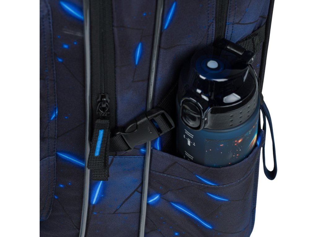 • Boční kapsy z pevného materiálu, které jsou vhodné pro jednu z našich láhví na pití.
