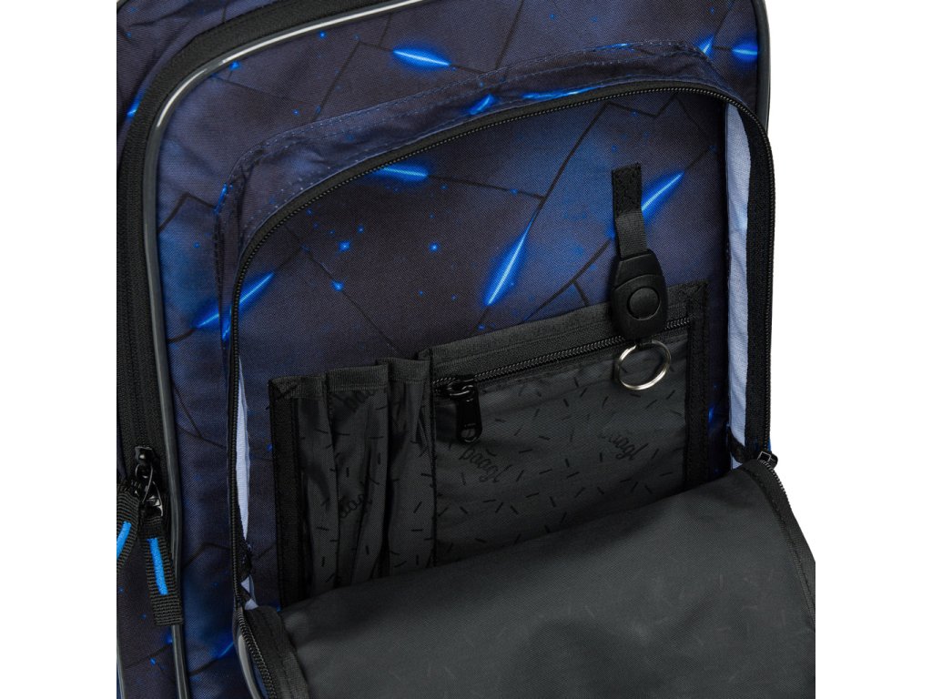 • Přední komora batohu obsahuje praktický organizér a také poutko s karabinou na zavěšení klíčů. Tuto karabinu je možné odepnout a používat samostatně.