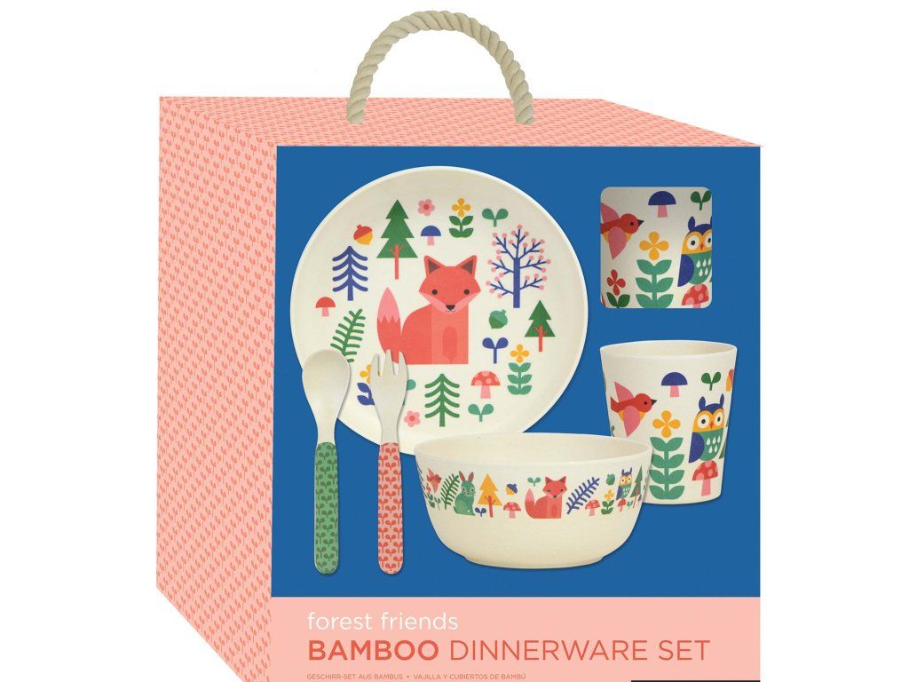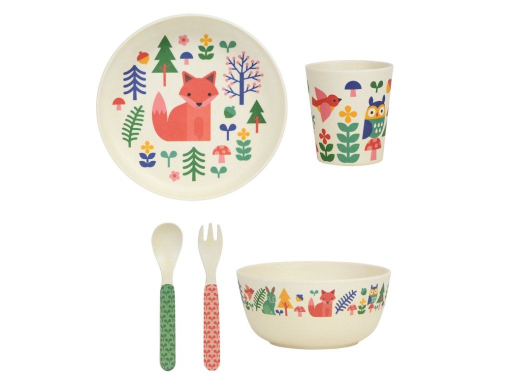 Tato ekologická 5 dílná sada s motivem lišky a jejích přátel je vyrobena z přírodního, obnovitelného a udržitelného zdroje bambusu. Nádobí má perfektní velikost pro malé ruce a je vhodné pro studené i teplé pokrmy a nápoje. Náš set nádobí je lehký a tak se stává skvělým doplňkem všech pikniků, zahradních párty nebo každodenního domácího užití.