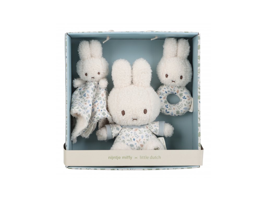 Dárkový box obsahuje tři hračky z jemného plyše a manšestru, které lákají ke hraní i mazlení před spaním v postýlce: králíčka, muchláčka a chrastítko. Hračky jsou vhodné pro děti od narození a sada se tak může stát i krásným dárkem pro novorozené miminko.Hračky jsou součástí kolekce hraček Little Dutch Miffy, jejichž ústřední postavou je roztomilá králičí holčička Miffy, známá z knížek pro děti holandského spisovatele Dicka Bruny.