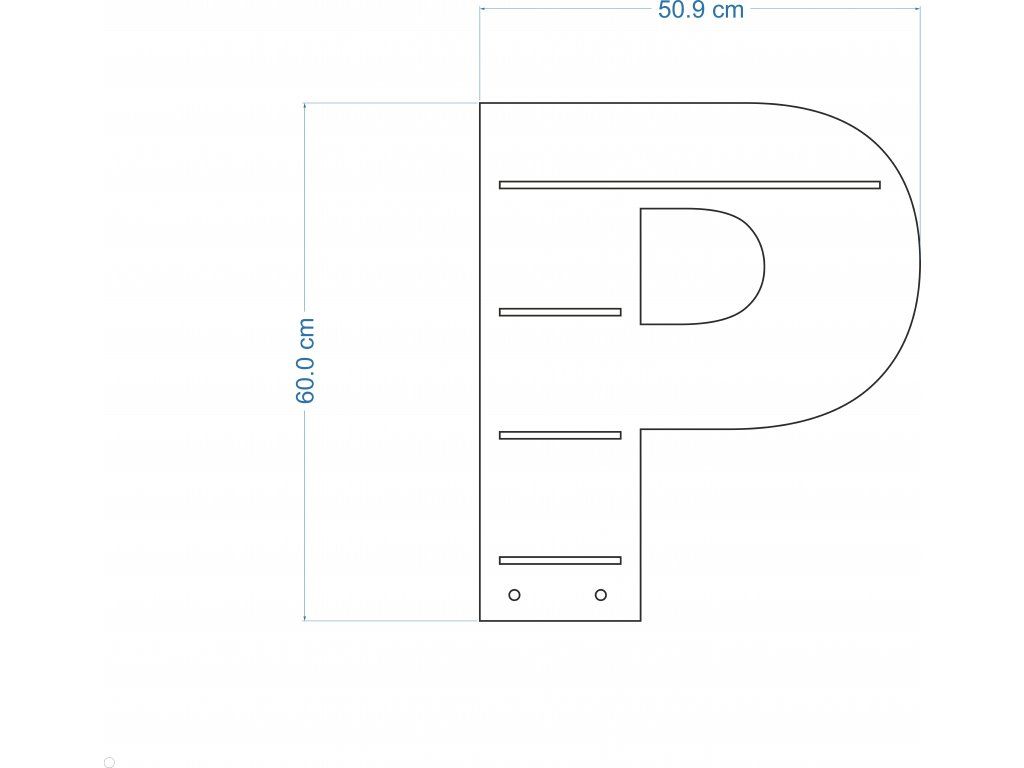 - Rozměry: Šířka písmene od 20 cm (písmenko "I") až do 67,5 cm (písmenko "M") (záleží na výběru písmene), výška 60 cm, hloubka poličky 10 cm.