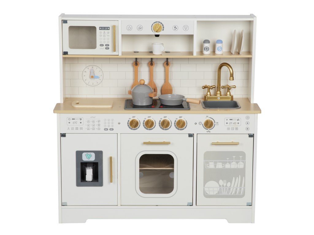 - Barevně neutrální - neutrální krémová barva a zlaté detaily dodávají dětské kuchyňce styl.