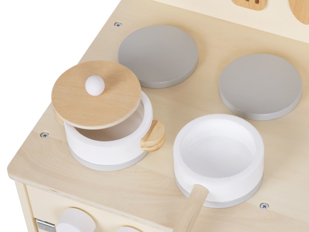 - Jemné pastelové barvy - díky jemným barvám je dřevěná dětská kuchyňka vhodná do každého dětského pokoje, hracího koutku nebo dětské herničky.