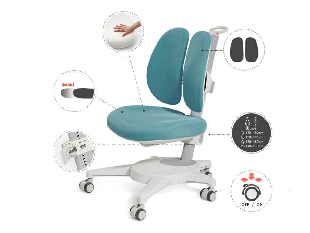 Ergonomická dětská židle se dokonale přizpůsobí tvaru těla vašeho dítěte, nabídne mu pohodlí a komfort, zajistí zdravou oporu pro záda a šetří páteř. Díky výškově nastavitelnému sedáku, zádové opěrce i hloubce sedu je židle vhodná pro děti od 3 do cca 18 let. Dvojitá zádová opěrka šetří záda a nevyvíjí zbytečný tlak na páteř. Podsedák s kvalitní a stabilní výplní se nedeformuje ani po dlouhém sezení, potah je prodyšný, odolný a pratelný. Pevná základna je velice stabilní a snadno se nepřevrhne. Uzamykatelná kolečka umožňují pohyb nebo zamezují pohybu židle, jsou vhodná na měkké i tvrdé povrchy, šetrné, nezpůsobují poškrábání podlahy. Kvalitní materiály a konstrukční řešení jsou zárukou pevnosti, stability a dlouhé životnosti.