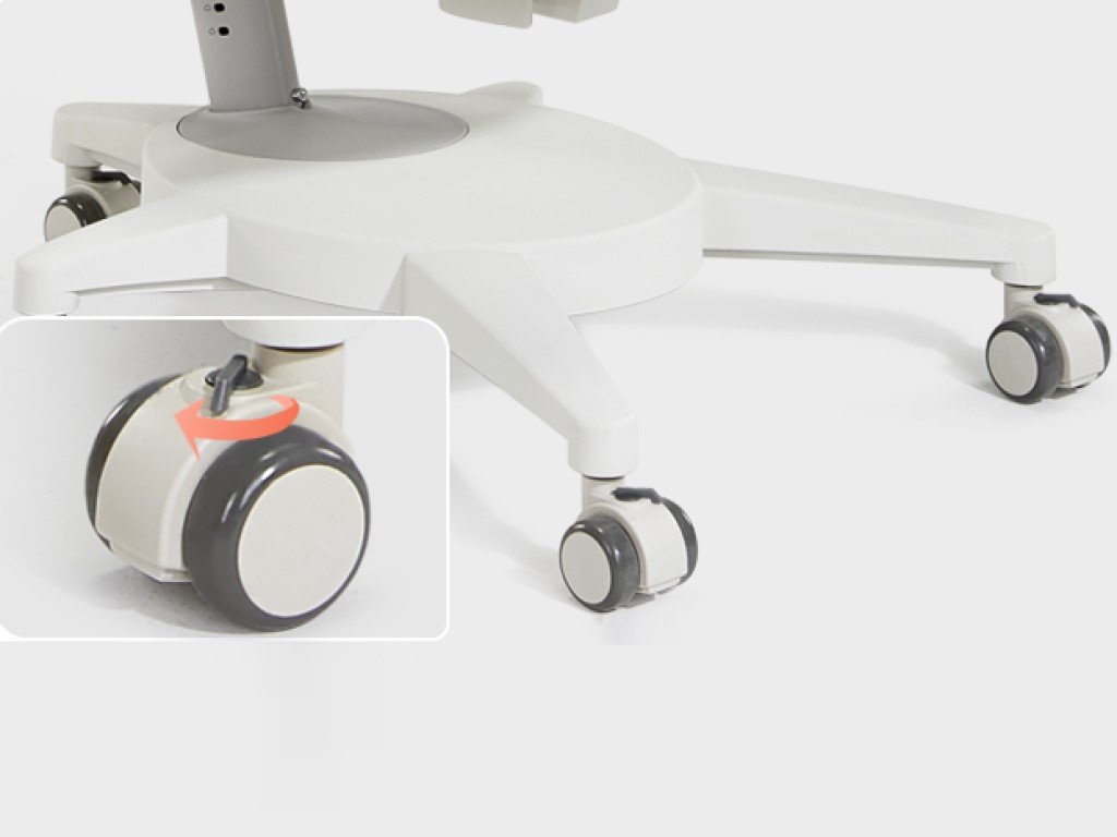 - Uzamykatelná kolečka - kolečka bez použití zámku volně kloužou po podlaze, při zamčení se židle nepohybuje a neodvádí pozornost dětí od učení.