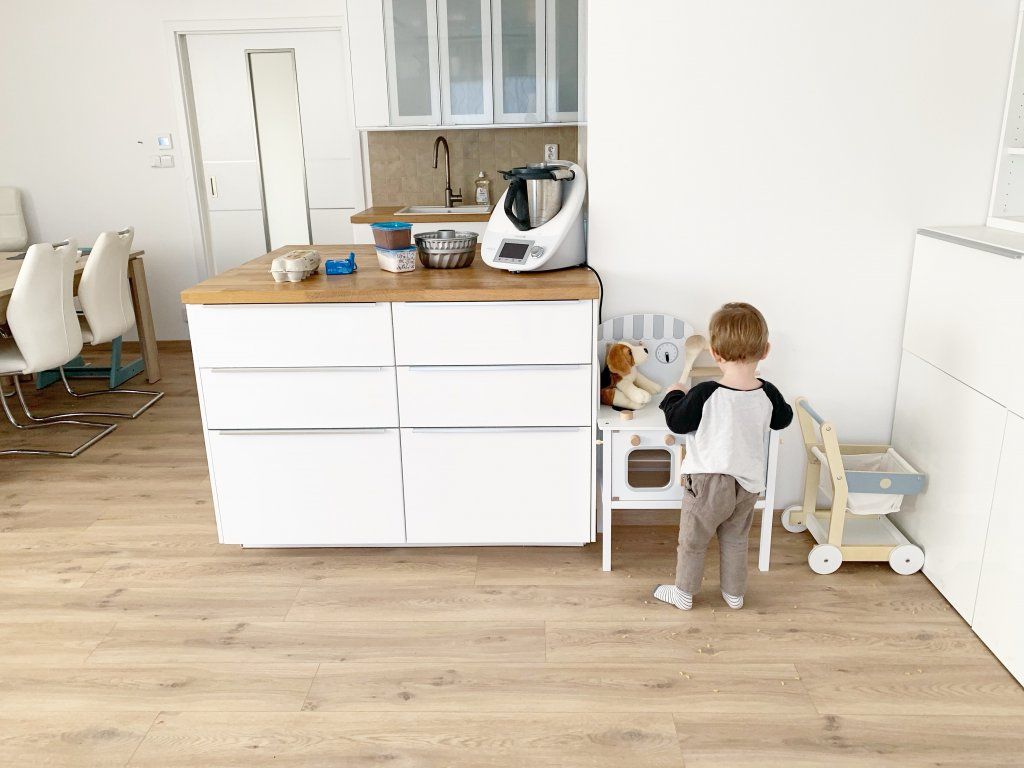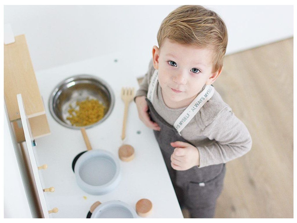 je vybavena sporákem, troubou, umyvadlem a dvěma skladovacími regály se spoustou prostoru pro veškeré kuchyňské doplňky. Otvory lze otevřít a varná deska má dvě varné plošky s knoflíky pro "regulování tepla". Na zdi jsou háčky, na které se zavěšuje kuchyňské náčiní a hodiny s otočnými ručičkami, takže dítě může kontrolovat čas, jak dlouho je jídlo v troubě. K dispozici malý kuchař má i dva hezké hrnce.