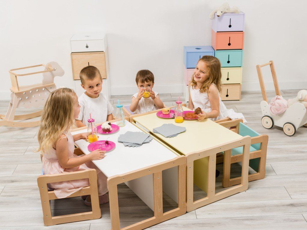 - Multifunkční využití (dětská lavička nebo dětský stůl s policí).