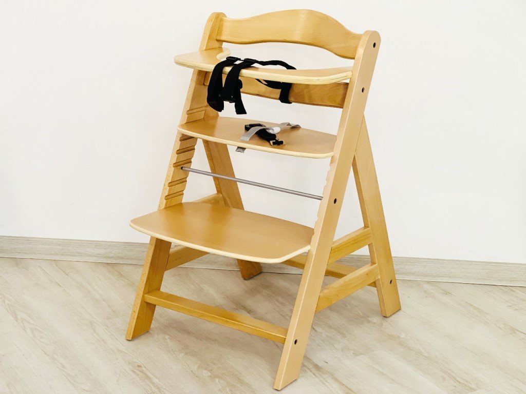 - Bezpečná - pro bezpečnost vaši holčičky nebo chlapce je jídelní židle vybavena 2 bezpečnostními pásy a odepínacím středovým popruhem. Všechny povrchy jsou dohladka obroušené a hrany zakulacené. Nenechávejte však vaše dítko v jídelní židličce bez dozoru.