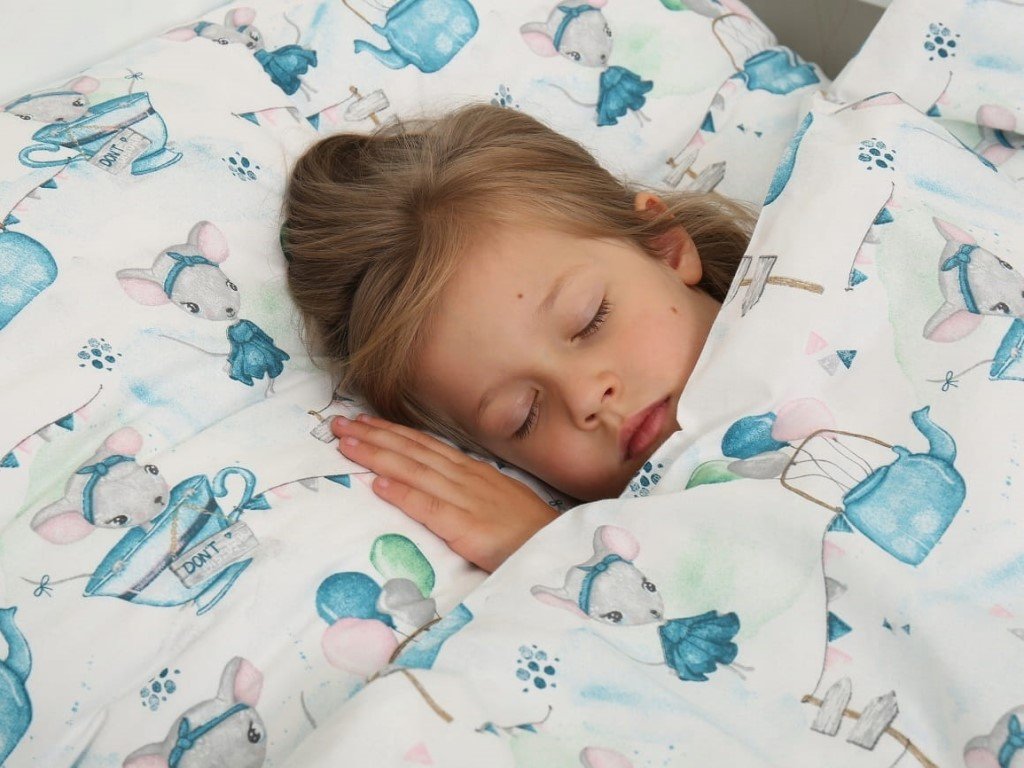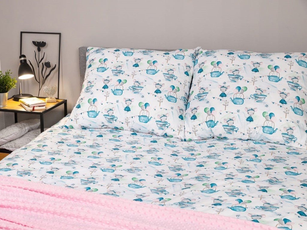 Dětské povlečení s roztomilými myškami zavede vaši holčičku v její fantazii a snech na narozeninovou oslavu nebo spíš čajový dýchánek. Myší slečny, oblečené v modrých šatičkách, promění dětskou postel v útulné místečko navozující klid a harmonii. S roztomilou myškou si vaše holčička může dát čaj na dobrou noc a ponořit se do říše snů. Roztomilý vzor a příjemné barvy navodí pocit pohody a relaxace, usnadní usínání. Povlečení, ušité z vysoce kvalitní 100% bavlny, je hebké a příjemné na dotek. Dětské povlečení dopřeje holčičkám i dívkám potřebný komfort pro kvalitní spánek i odpočinek. Praktické zapínání na bezpečný zip usnadní převlékání přikrývky a polštáře, silné švy zajistí dětskému povlečení dlouhou životnost.