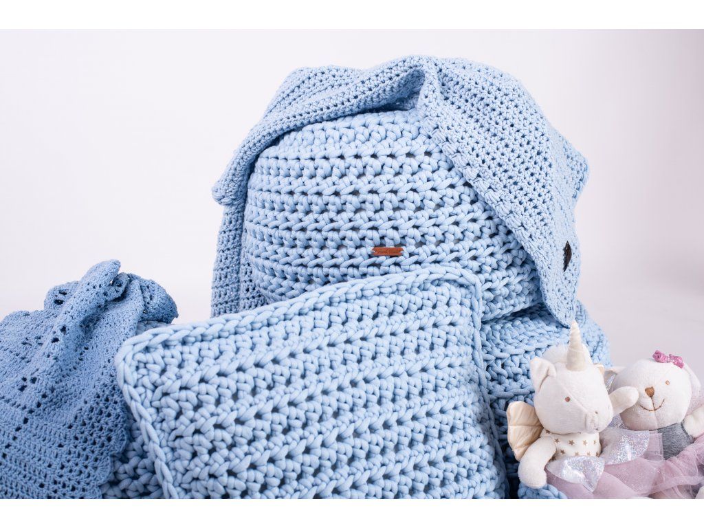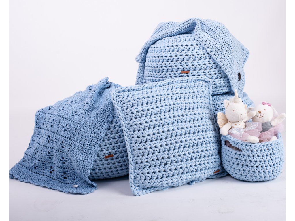 Háčkovaný set malý (puf + polštář + 2x košík)