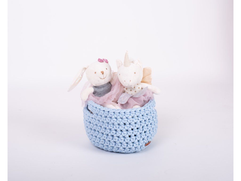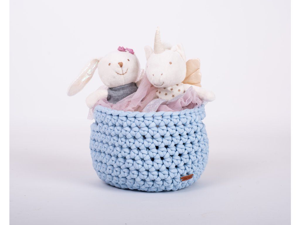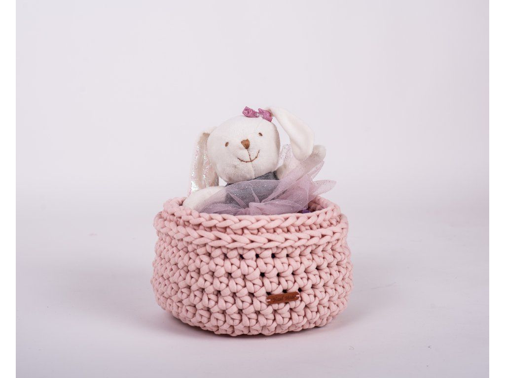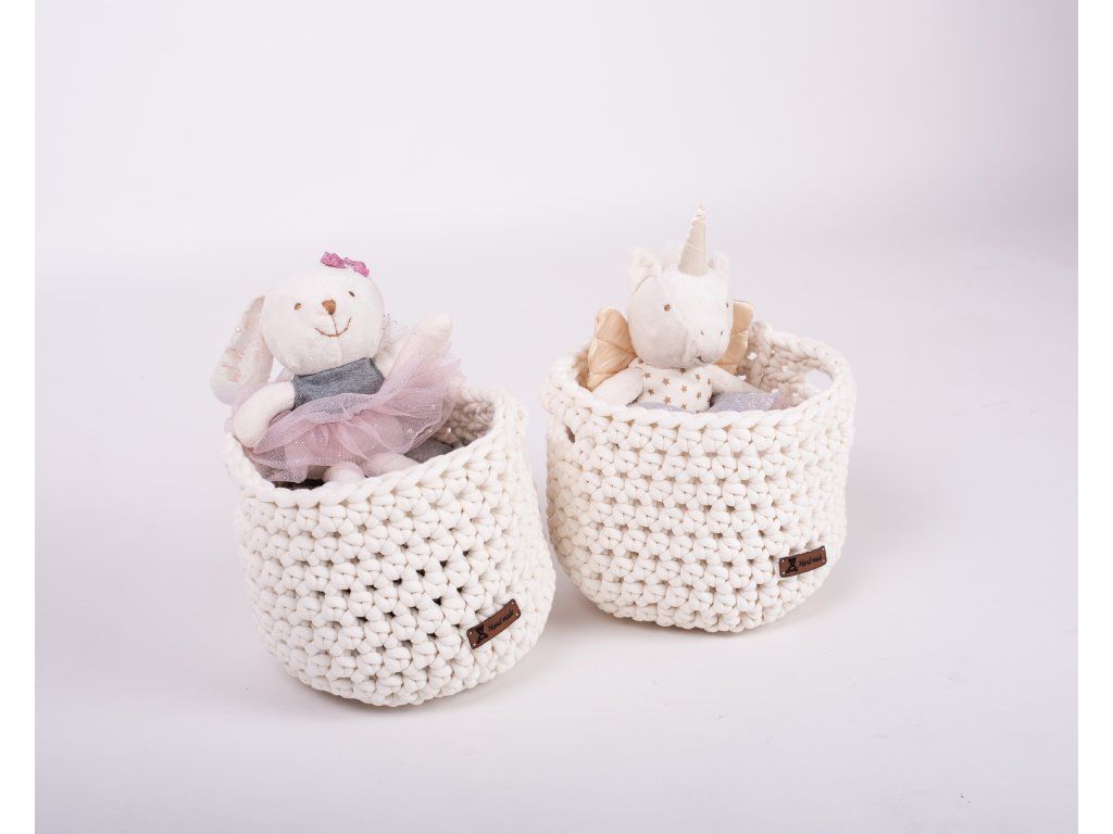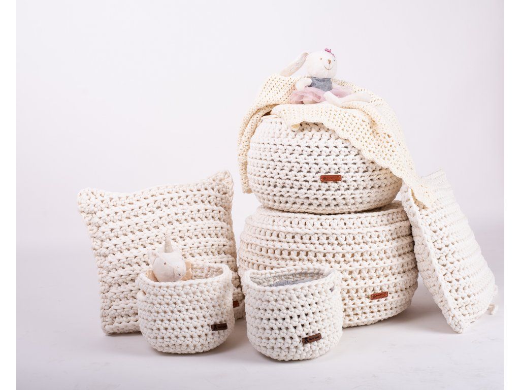 Košík je ručně uháčkován v České republice z měkké příze příjemné na dotek. Jedná se o dekoraci, doporučujeme v něm ukládat jen suché a čisté věci. Košík lze prát dle uvedených pokynů. Po vyprání je nutné košík upravit do požadovaného tvaru.