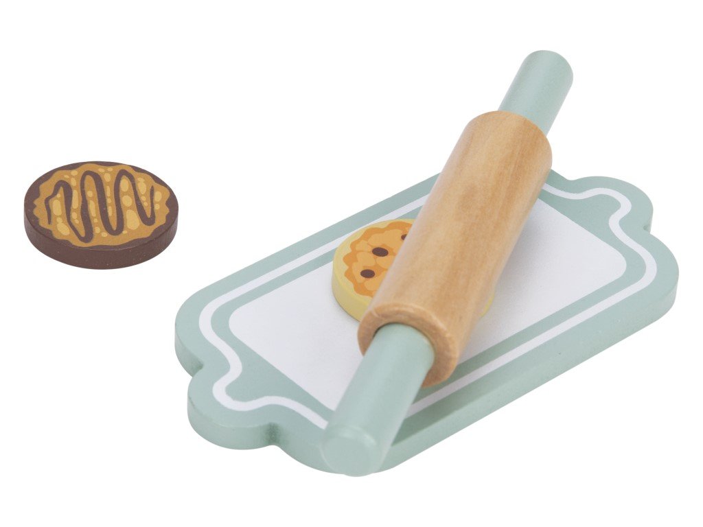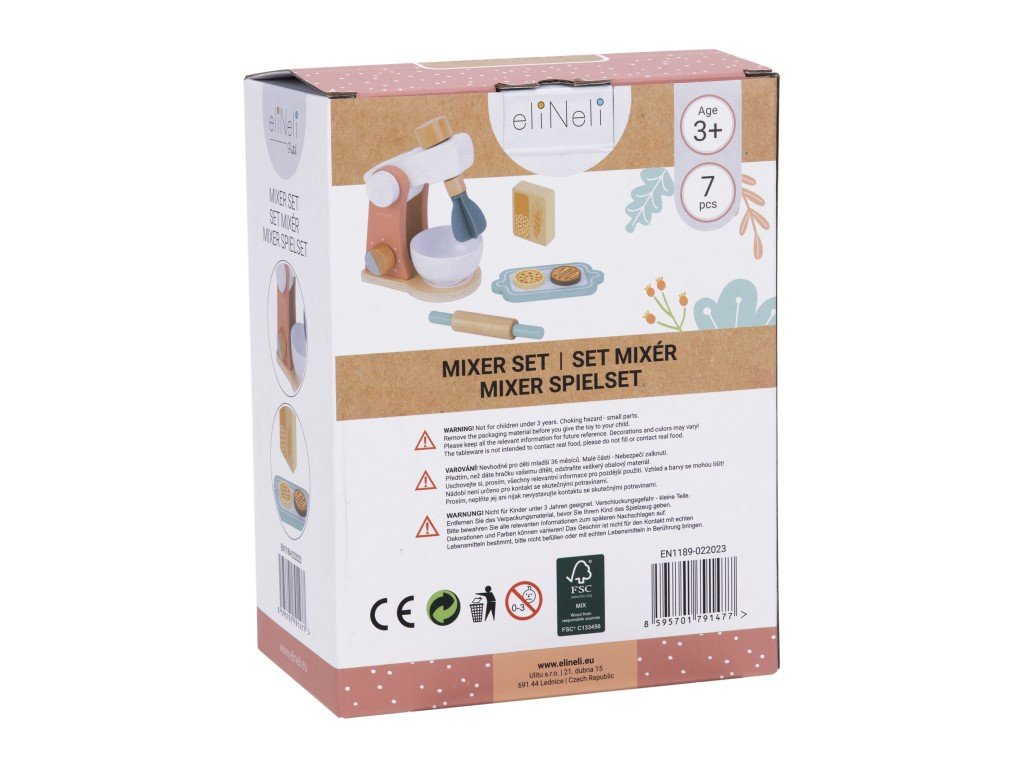 - Set mixér + příslušenství - v setu děti najdou parádní dřevěný mixér, mísu na míchání, tác (destičku), váleček, mouku i hotové sušenky.