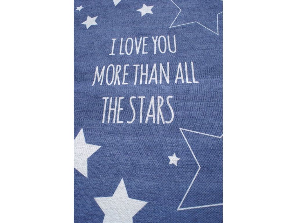 Moderní a kvalitní dětský kusový koberec v růžové nebo stříbrně-šedé barvě s hvězdami a anglickým textem vyjadřující lásku je jako stvořen do holčičího a dívčího pokoje. Díky použitým pastelovým barvám je možné tento koberec umístit do každého dětského pokoje, který tak zútulní, oživí a bude vašim dětem neustále připomínat vaši lásku k nim. Tento vysoce kvalitní koberec odpovídá současným trendům v oblasti zařizování dětských pokojů a je velice snadno kombinovatelný s ostatním vybavením moderního dětského interiéru. Růžový nebo stříbrně-šedý koberec s hvězdami se zajisté stane nejoblíbenějším místem ke hře na podlaze, zajistí potřebný komfort i při krátkém odpočinku a povalování na podlaze, je příjemný na dotek, snadno se udržuje, čímž je tedy i velice praktický.