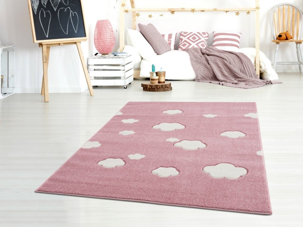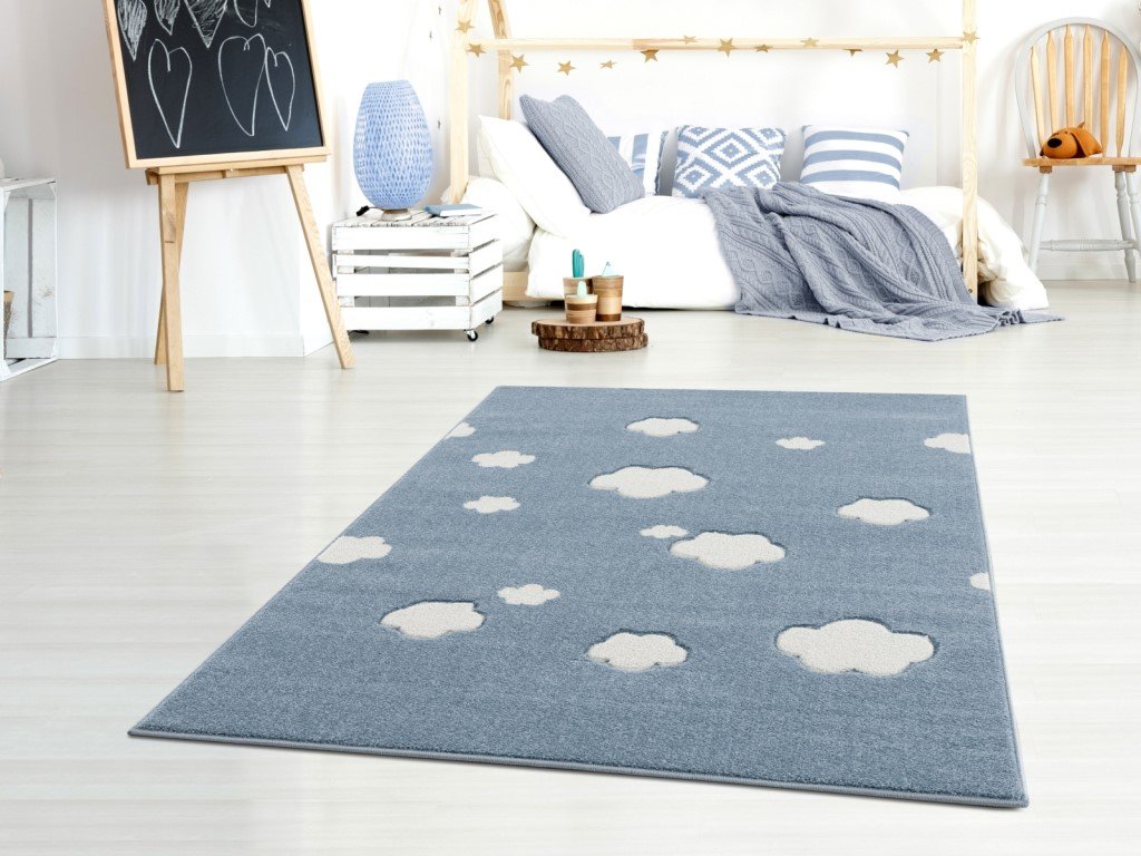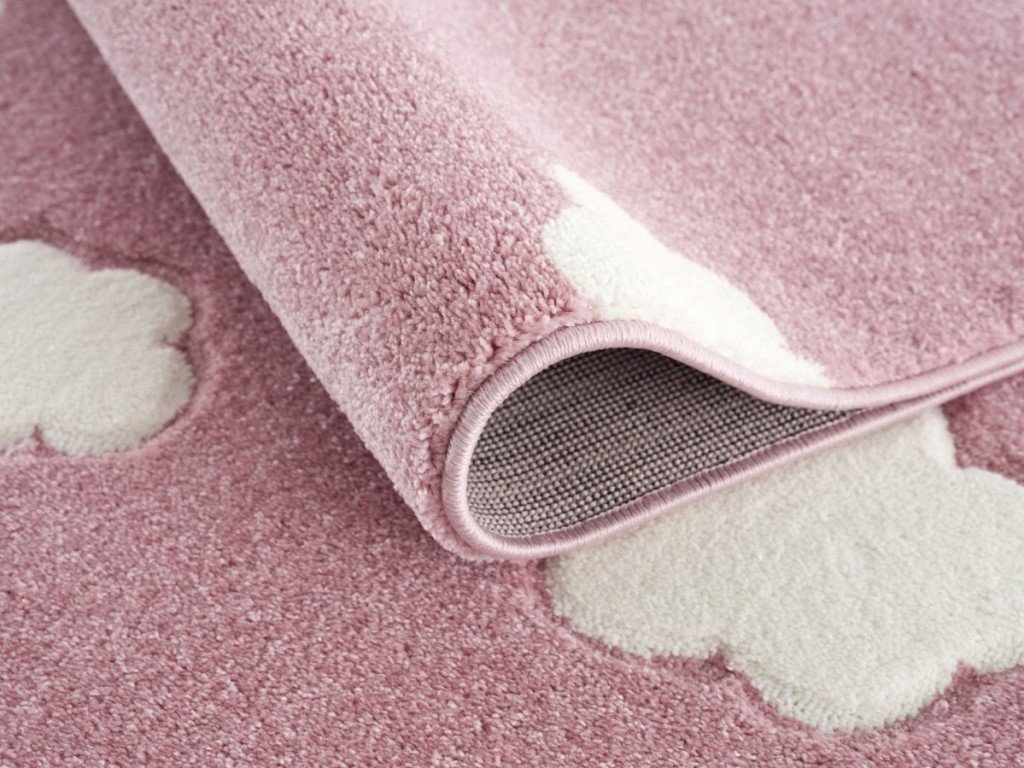 Měkký a příjemný dětský koberec v moderních i neutrálních barvách posetý něžnými bílými obláčky potěší každou holčičku i chlapce. Koberec krásně doladí dětský interiér a nabídne dětem pohodlí při zábavné hře na podlaze i lenošení. Chrání před případným chladem od podlahy, je antistatický a antibakteriální. Vhodní je i do místností s podlahovým vytápěním.