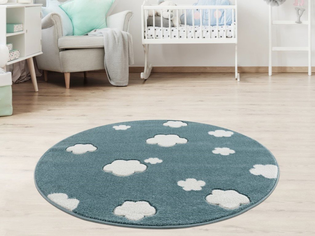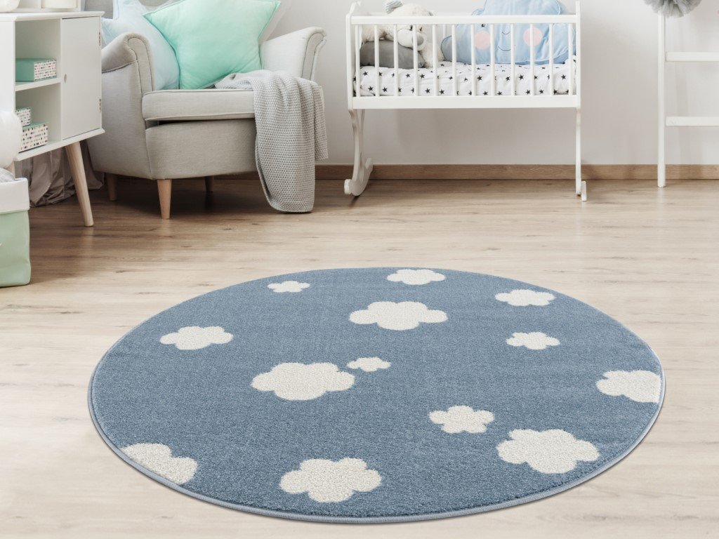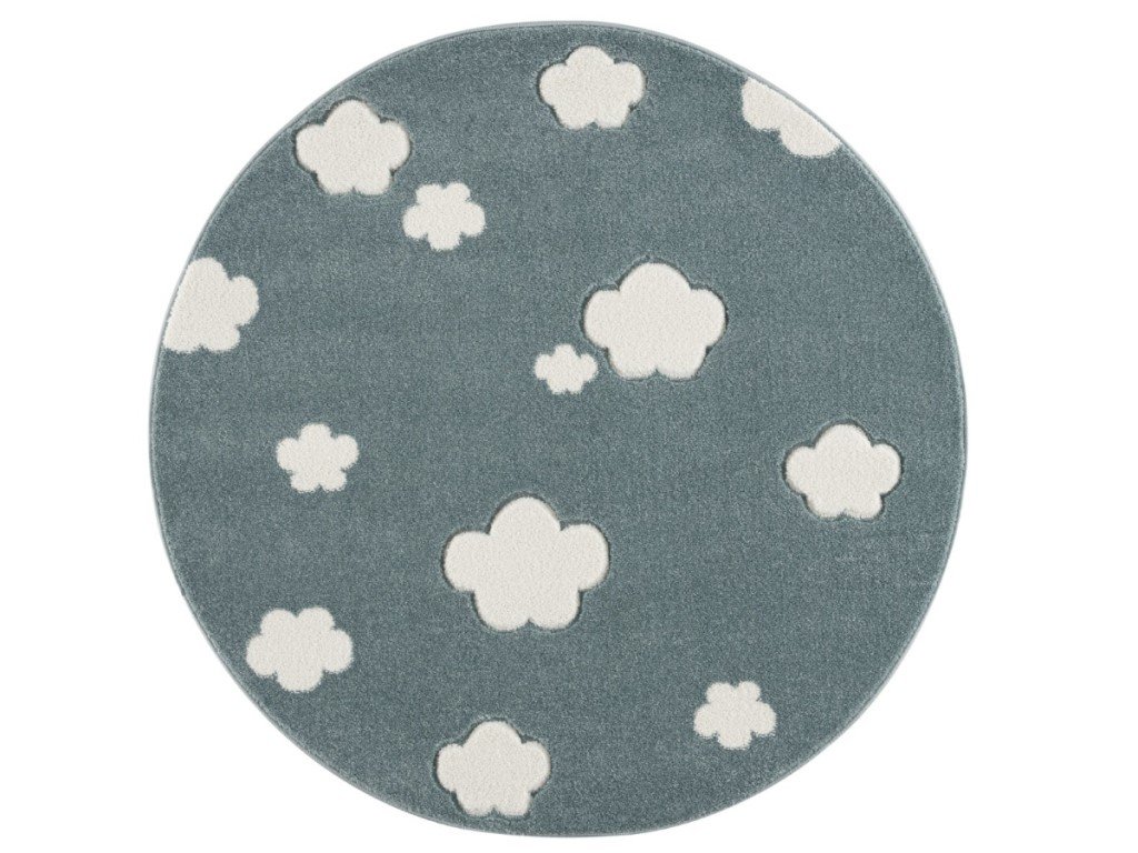 Originální koberec v netradičním kulatém tvaru oživí každý, nejen dětský interiér. Měkký a příjemný koberec v moderních barvách s něžnými bílými mráčky poskytne dětem pohodlí při hře na podlaze, zároveň je krásnou dekorací do každého pokoje. Kulatý koberec je vhodný do místností s podlahovým vytápěním, je antistatický, antibakteriální. Jistě oceníte i jeho snadnou údržbu i čištění.