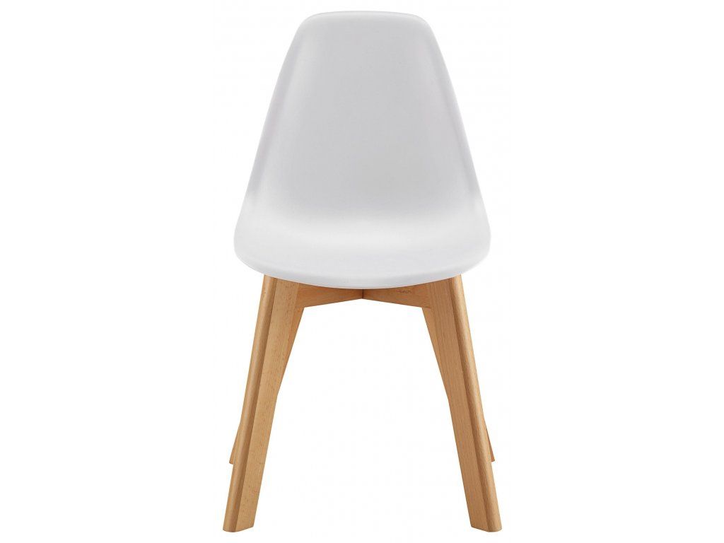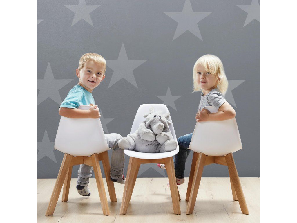 Tento moderní design, kombinující plastový sedák a dřevěné nohy, je velmi populární u nábytku pro dospělé. V dětském podání ovšem dostává další praktický rozměr - sedák hravě odolá ručičkám od čokolády, marmelády nebo oleje.