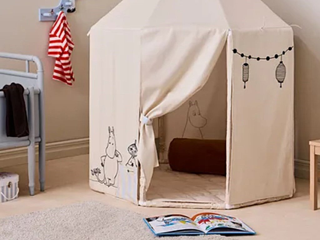 Děti milují různé schovávačky, bunkry a domečky. Látkový pavilon z certifikované bavlny s dřevěnou kruhovou konstrukcí a roztomilým potiskem kamarádských mumínků si tak oblíbí, že v něm s velkou pravděpodobností budou chtít i spát. V dětské fantazii se může altán stát čímkoli - domečkem na hraní, obchodem, knihovnou, schovávačkou před divokými zvířaty v džungli, chladným místečkem v oáze na vyprahlé poušti nebo prostě útulnou chatkou. Děti si přinesou velkou hromadu dek a polštářů a zabaví se hraním v altánku na celé hodiny.