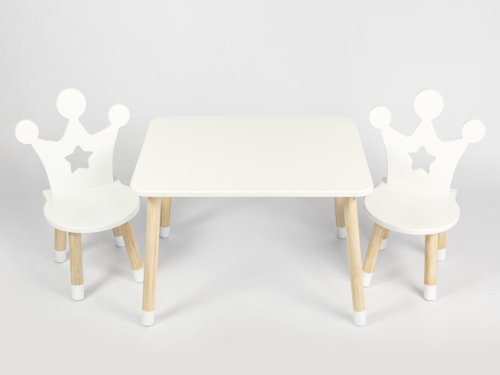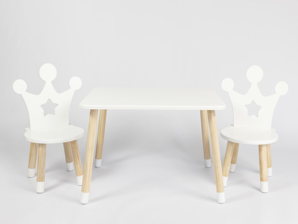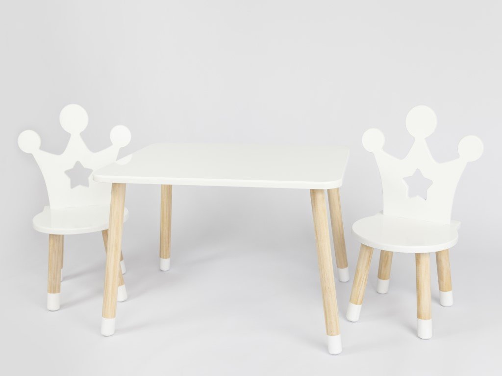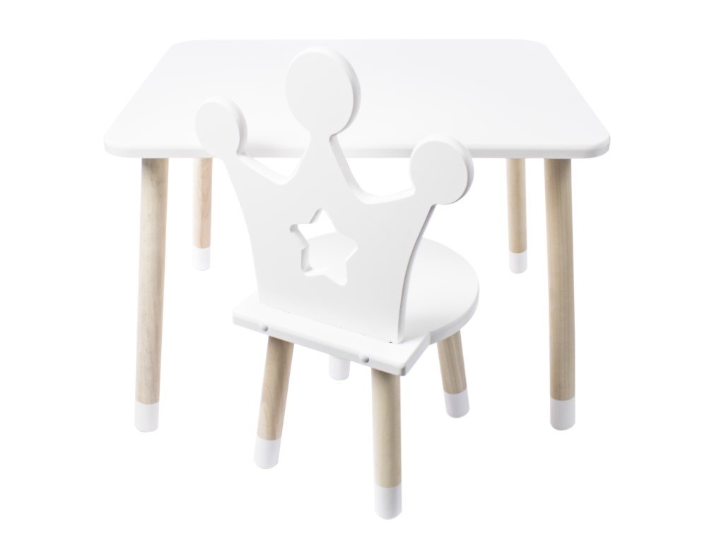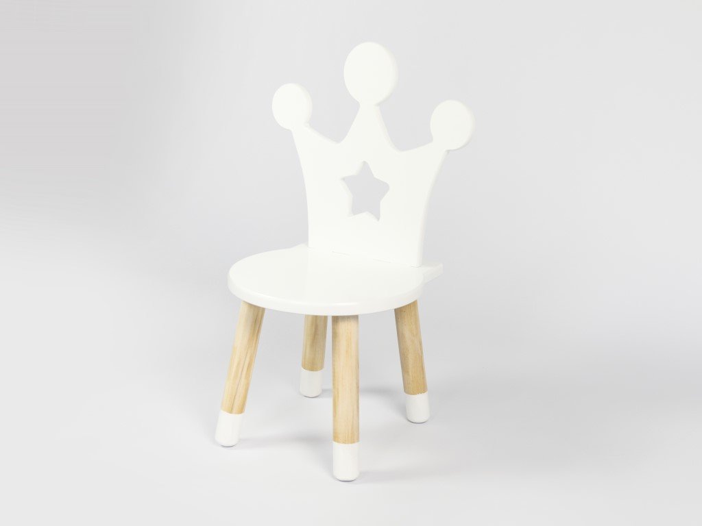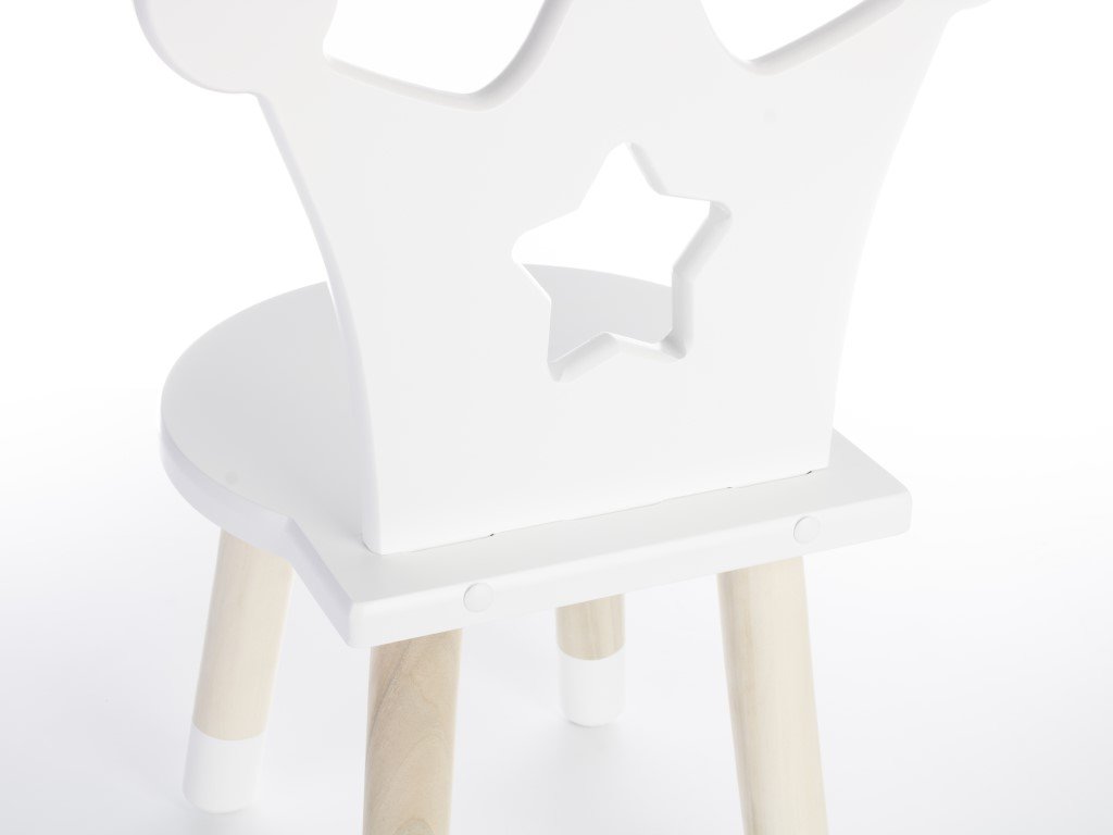 Dětský stolek a židle do dětského pokoje, s opěrátky ve tvaru korunky, budou ozdobou každého dětského království. Stůl a židle v moderní a elegantní kombinaci bílé barvy a přírodního dřeva je ideálním doplňkem do pokojíčku malých princezen. Každá židlička je takový malý trůn, na kterém se vaše holčička může pohodlně usadit a u stolečku se pustit do malování, kreslení, různého tvoření, hry s oblíbenými hračkami, do svačinky nebo na židle usadit své oblíbené panenky, plyšáky, kamarádky nebo rodiče a uspořádat čajový dýchánek pro své nejmilejší.