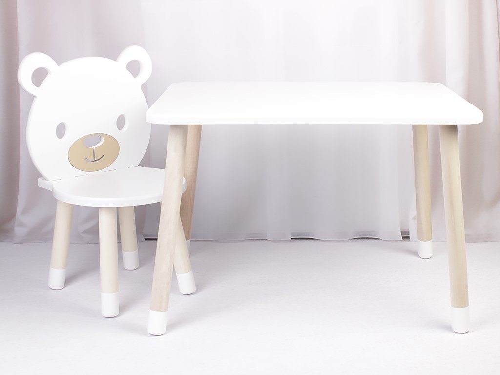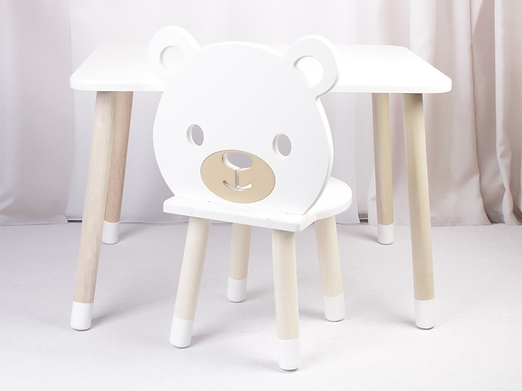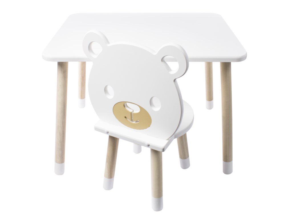 Stůl a židle pro děti, s opěrátky v podobě roztomilého medvídka, budou ozdobou dětského pokojíčku, dětské herničky i hracího koutku. Dětský stoleček a židličky v moderní a elegantní kombinaci bílé barvy a přírodního dřeva je ideálním doplňkem do pokojíčku holčiček i chlapců. Každá židlička je roztomilým zvířecím kamarádem, který nabízí dětem svou náruč. Židle medvídek dopřeje dětem pohodlí u barevně sladěného dětského stolečku, umožní dětem kreslit si, malovat, tvořit, hrát si nebo posvačit přímo v dětském království. Díky vysoké nosnosti se dětských her mohou zúčastnit i rodiče. Bez obav se můžete posadit a přijmout pozvání na kávu, čaj nebo malou hostinu pro nejmilejší.