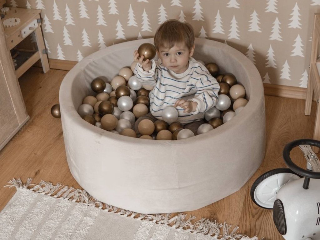 Vysoce kvalitní dětský bazének se sametovým potahem okouzlí každého. Suchý bazének je velice příjemný na dotek, jeho potah je totiž ušitý z vysoce kvalitního a jemného sametu. Stěny bazénku jsou vyrobeny z materiálu vyšší hustoty, drží krásně tvar a nedeformuje se. Součástí kulatého suchého bazénků je 200 ks barevných míčků z certifikovaného plastu, které jsou vhodné a bezpečné pro dětskou hru. Každá barva bazénku má již danou barevnou kombinaci míčků, kterou není možné změnit.