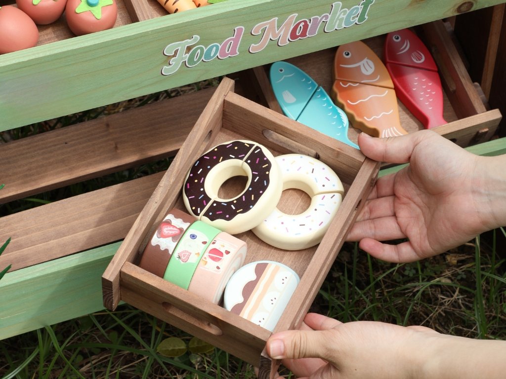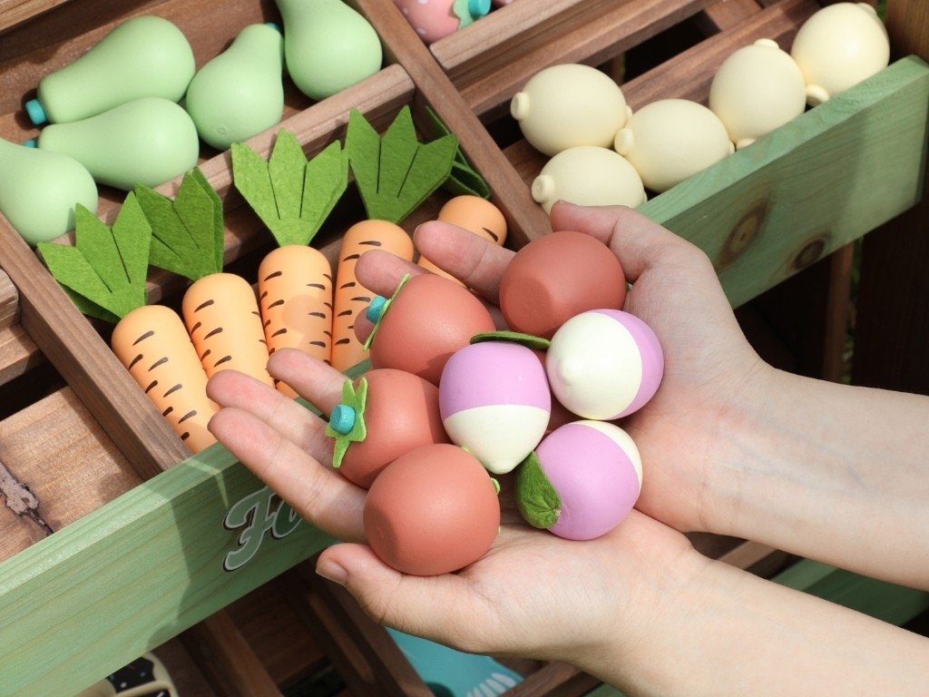 Děti si při krájení a manipulaci se zbožím rozvíjejí jemnou motoriku, koordinaci i praktické dovednosti. Společné hraní podporuje komunikaci, spolupráci a přirozeně buduje sociální vazby.