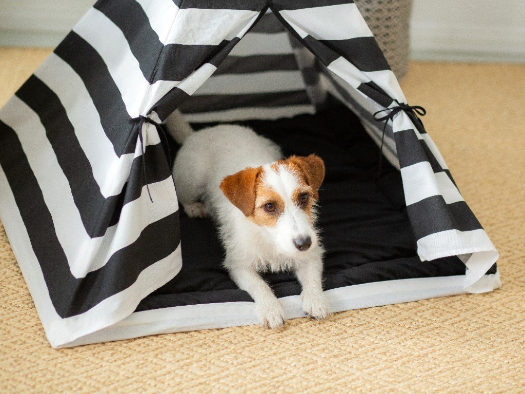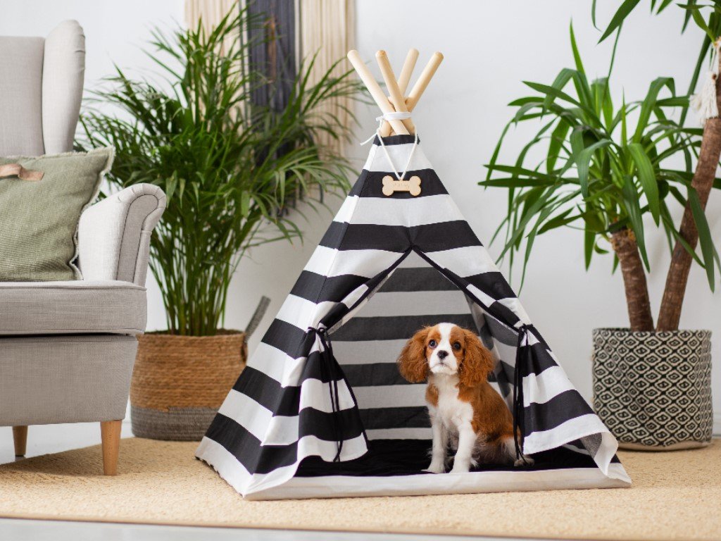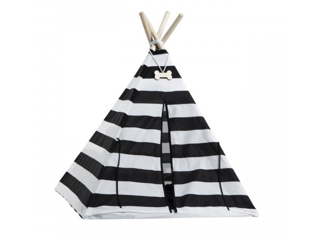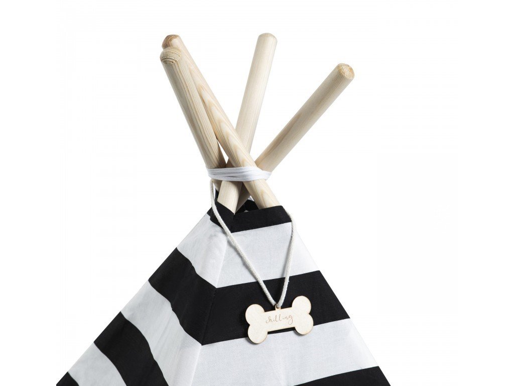 Teepee stan pro domácí mazlíčky kombinuje moderní design a funkčnost, takže je ideálním místem pro odpočinek a hry vašeho chlupatého kamaráda. Nabízí mu příjemné útočiště i potřebný stín během slunečných dní. Je vyrobeno z vysoce kvalitní bavlny v pruhovaném černo-bílém designu. Deka je z jedné strany vyrobena z měkkého veluru, který je odolný proti poškrábání a snadno se čistí. Tkanina nezadržuje pachy ani skvrny, čímž zajišťuje svěží prostředí pro vašeho mazlíčka. Látky jsou bezpečné a netoxické pro zvířata, certifikované podle OEKO-TEX 100.