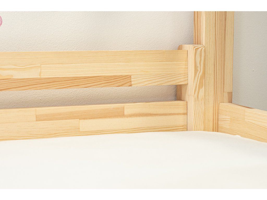 - V případě objednání domečkové postele o šířce větší než 100 cm (tedy 120, 140 nebo 160 cm) je rozměr šuplíku pouze 60 x 200 cm (z důvodu lepší stability postele je postel vybavena středovým příčníkem, který neumožňuje pod postel zasunout hlubší šuplík).