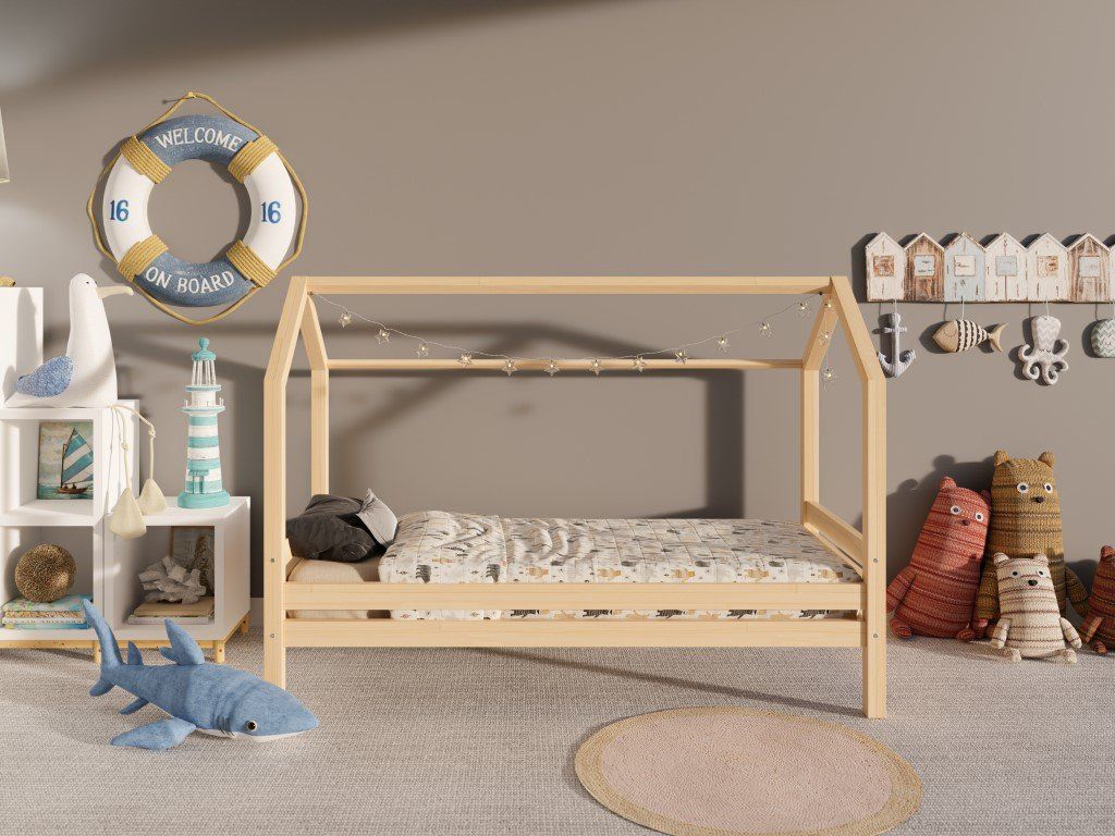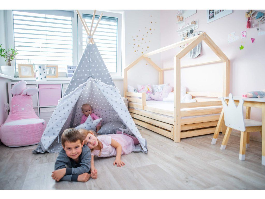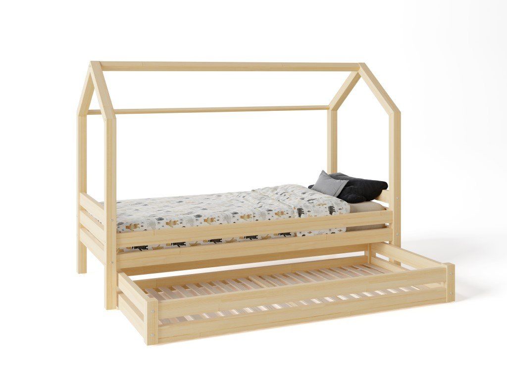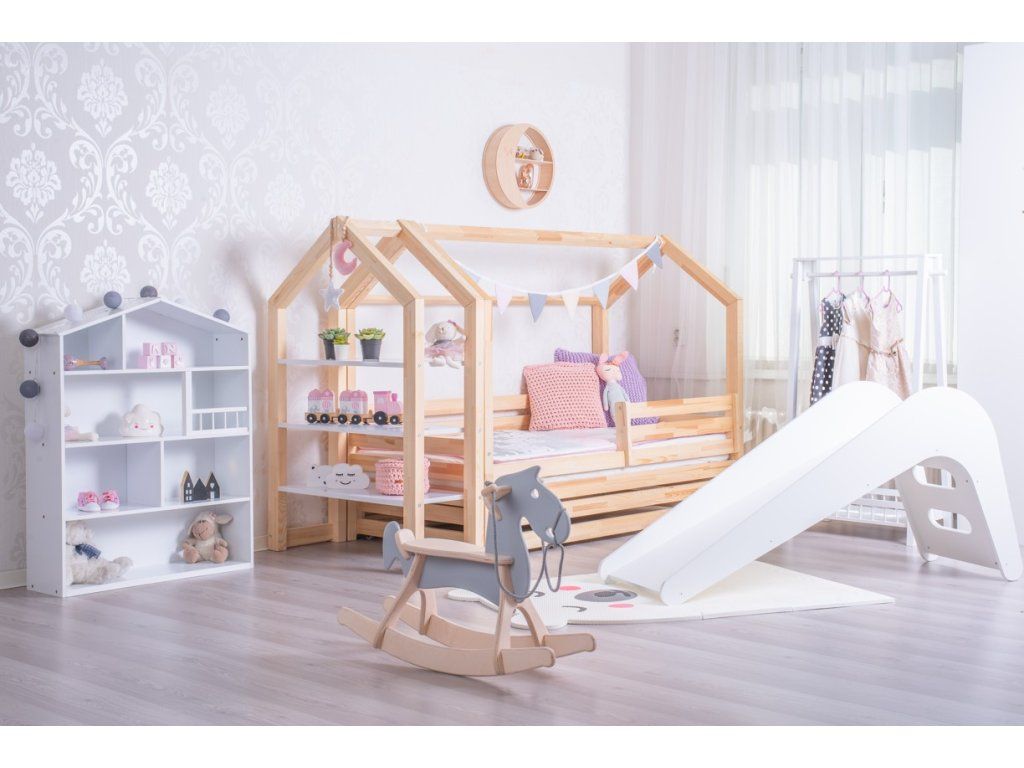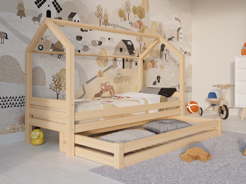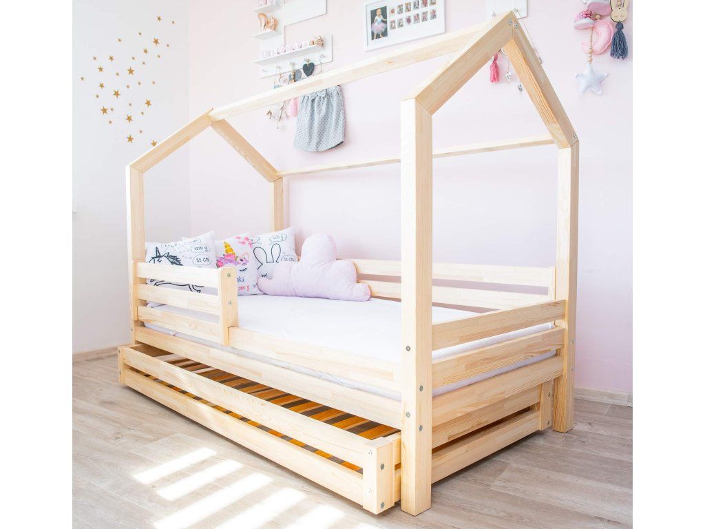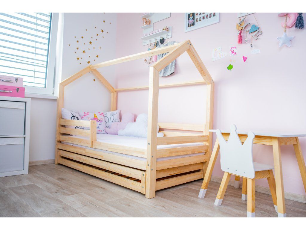 Zřejmě nejdůležitějším kouskem nábytku v dětském pokoji je vhodně zvolená postel. Dřevěné postýlky ve skandinávském stylu, v podobě domečku, jsou mezi dětskými lůžky bezesporu těmi nejoblíbenějšími. Nejsou to totiž pouhé postele k přespání, ale celá dětská obydlí designově přizpůsobená jejich světu. Vaše ratolesti se v nich nejen skvěle vyspí, ale přes den při hrách ve svém víceúčelovém domečku mohou dát prostor bezbřehé dětské fantazii. Šuplík pod postýlkou lze využít jako další lůžko nebo úložný prostor. Dno v šuplíku není plné, tvoří jej rošt.