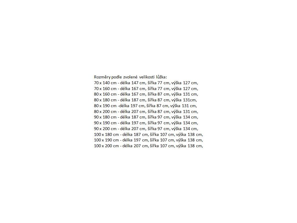 | Rozměr: | 70 x 140 cm, 80 x 160 cm, 80 x 180 cm, 80 x 190 cm, 80 x 200 cm, 90 x 180 cm, 90 x 190 cm, 90 x 200 cm, 100 x 180 cm, 100 x 190 cm, 100 x 200 cm, 120 x 200 cm |