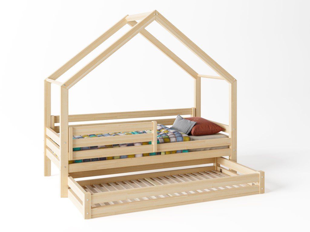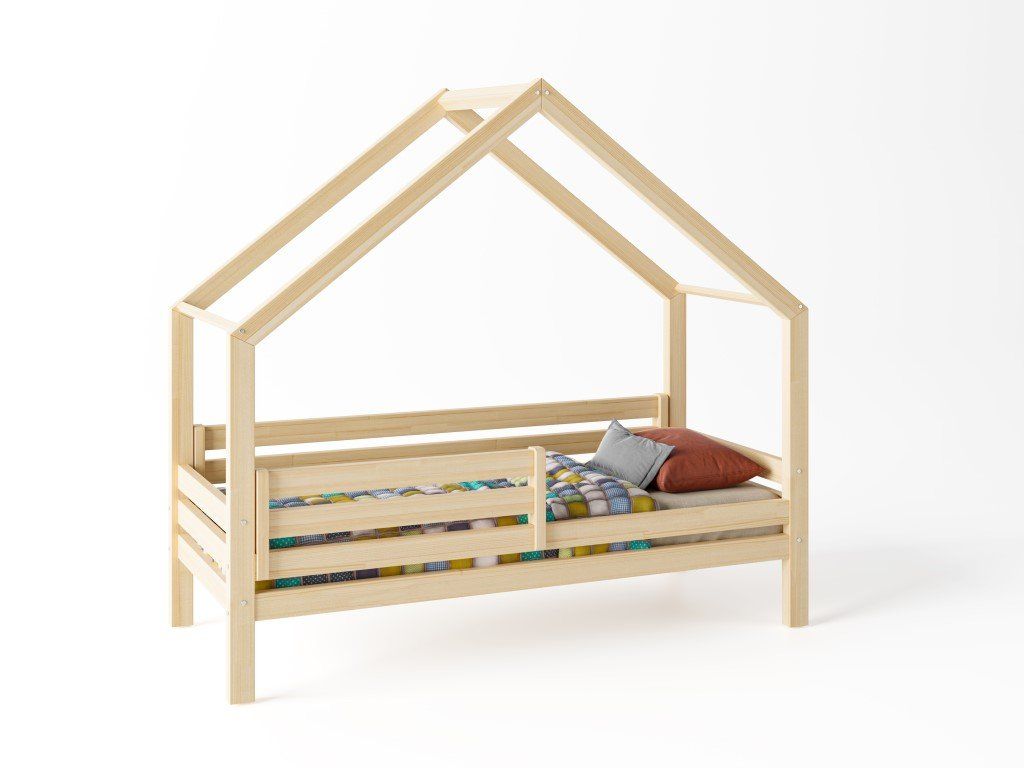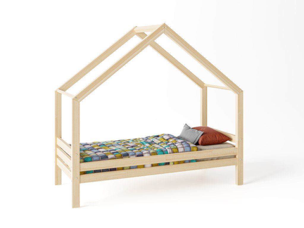 Ekologická dřevěná domečková postýlka ve skandinávském stylu.