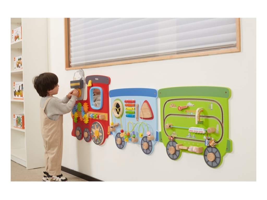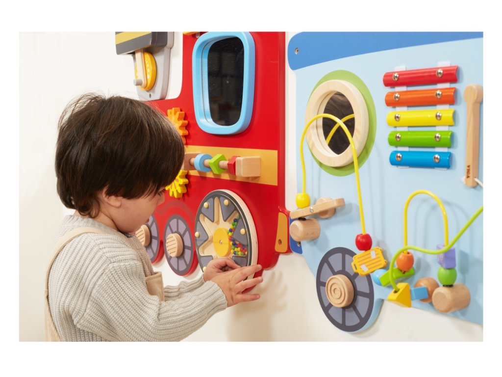 Obsahuje spoustu herních prvků pro rozvoj dětské motoriky.