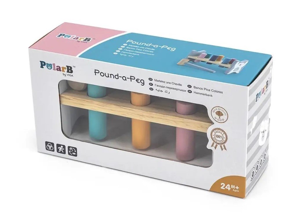Dřevěná zatloukačka je jednou z klasických hraček, která by neměla chybět v žádném dětském království. Pomocí kladívka (paličky) děti mohou klepat do dřevěných válečků a zdokonalovat své dovednosti. Zatloukačka je hračkou, které vůbec nevadí, že do ní budou děti klepat a bouchat. Naopak, je to podstata zábavné hry, která je pro rozvoj dětských dovedností velice prospěšná. Při hře se zatloukačkou si děti potrénují motorické dovednosti, koordinaci očí a rukou, prostorovou představivost, naučí se soustředit a trpělivosti. Při zatloukání barevných válečků se děti mohou učit poznávat barvičky. Dřevěná zatloukačka s ledním medvídkem, v jemných a zároveň neutrálních barvách, je krásným dárkem pro kluky i holčičky.