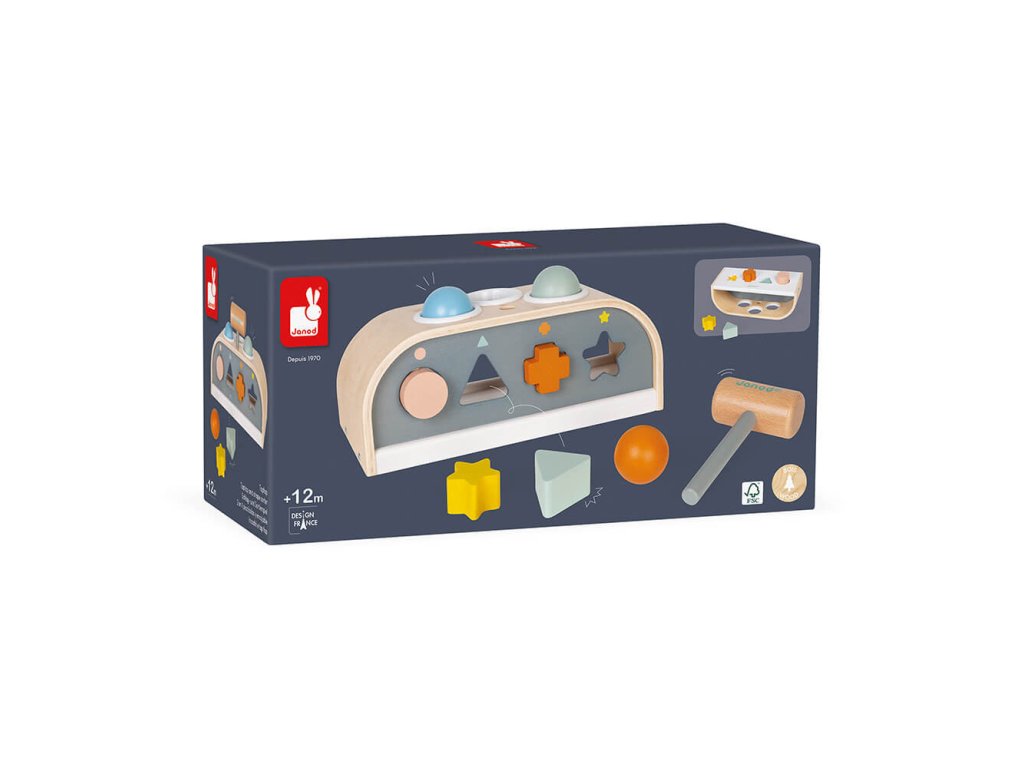 Dřevěná zatloukačka s tříděním tvarů a barev