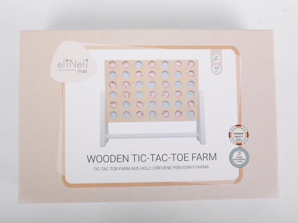 Kdo by neznal oblíbenou hru piškvorky? Hru piškvorky v různých podobách, na papíře, v písku nebo v dřevěném stojanu si vyzkoušel snad každý a kdo nevyzkoušel, teď je ta pravá chvíle. Roztomilá zvířátka z farmy - ovečky a králíčci, děti seznámí s touto jednoduchou hru, s jednoduchými pravidly. Dřevěná hra piškvorky zdokonaluje motorické dovednosti, koordinaci očí a rukou, logické i strategické myšlení, probouzí u dětí přirozenou soutěživost, učí děti poznávat barvičky, zvířátka, počítat, trpělivosti a soustředit se, zásadám fair play, vyhrávat i prohrávat.