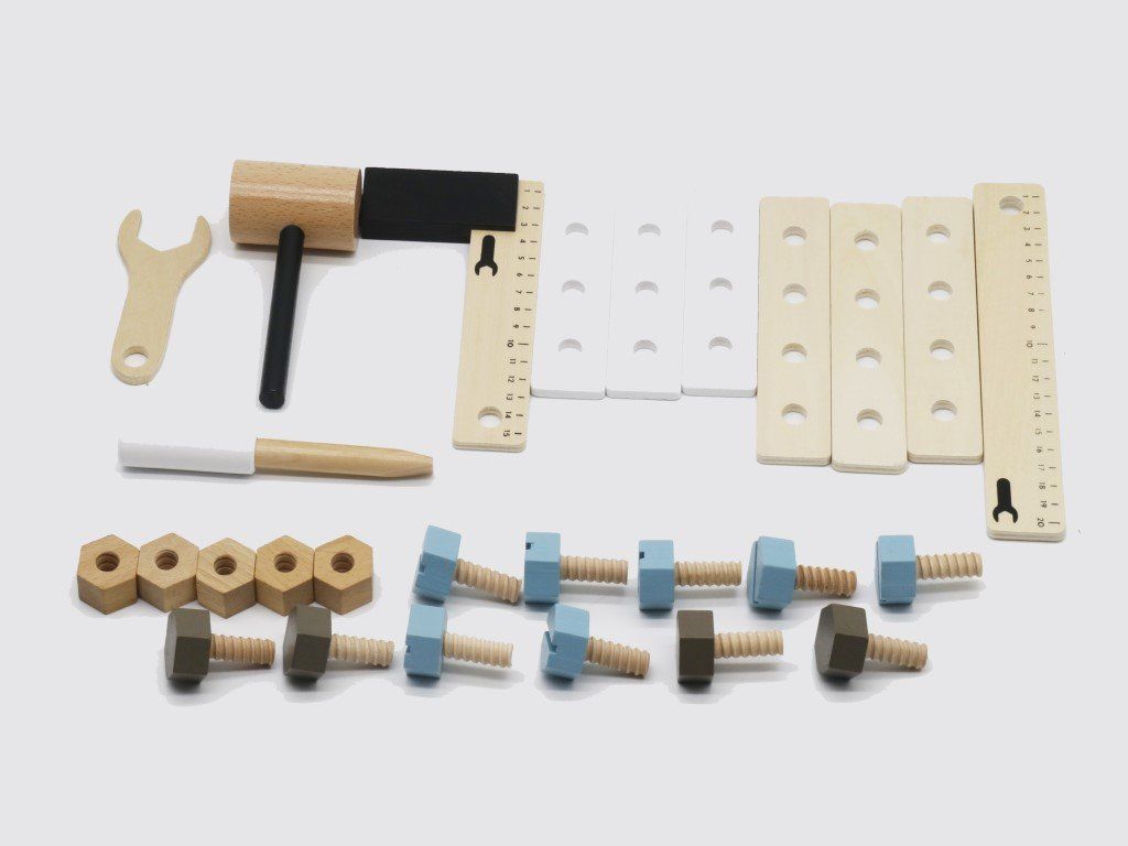 Mezi takové hračky patří i tato moderní dětská dílna (ponk) s pracovním stolem a nářadím, která umožní holčičkám i chlapců vžít se do role opravdového kutila. Děti si ve vlastní dílně mohou vyzkoušet práci s dřevěným nářadím, šroubovat, měřit, utahovat a povolovat matičky klíčem, zatloukat kladívkem, točit kličkou od svěráku, montovat destičky a připevnit poličku na šroubky a matky. Nářadí, které je součástí dětské dílny, krásně padne do dětské ručky a skvěle poslouží i k drobným opravám v domácnosti. Není nad zručného pomocníka, který vám bude po ruce a s nadšením vám bude podávat vše co k opravě budete potřebovat. S malým kutilem bude každá drobná i větší oprava, kutění i vyrábění v domácí dílně velkou zábavou, při které můžete trávit více času společně.
