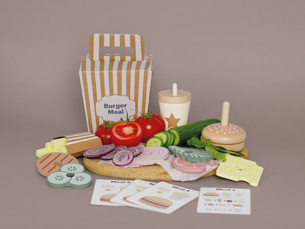 "Dobrý den, vítejte u nás v občerstvení. Co si dáte?" Vaše malá holčička nebo chlapec ve svém fast food obchůdku nabízí jenom ty největší dobroty. Máte rádi hamburger s propečeným masíčkem? Nebo raději šťavnatý s velkou hromadou zeleniny? Nebo jedete na vegetariánské vlně? Z jídelních lístků, na kterých jsou různé kombinace výborného menu, si vybere každý. A kdyby náhodou váš favorit zrovna chyběl, není nic snazšího, než si společně s dětmi udělat tvořivé odpoledne a další lístky s nabídkou vyrobit. Při vymýšlení nových kombinací se v dětech projeví kreativní duch, zvýší se jejich představivost a jako pomyslnou tečku za hrou si můžete udělat opravdový hamburger se vším, co si děti namalovaly.