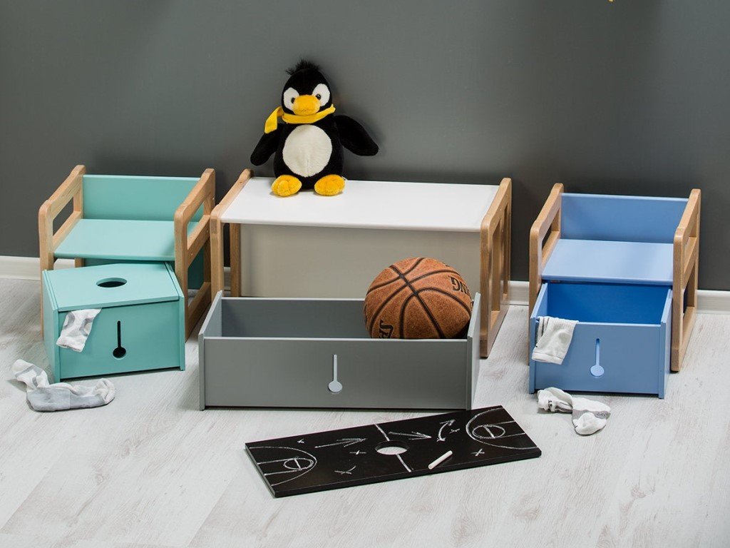- Multifunkční využití (úložný box nejen na hračky, police do dětského pokoje i zásuvka k dětské multifunkční lavici).