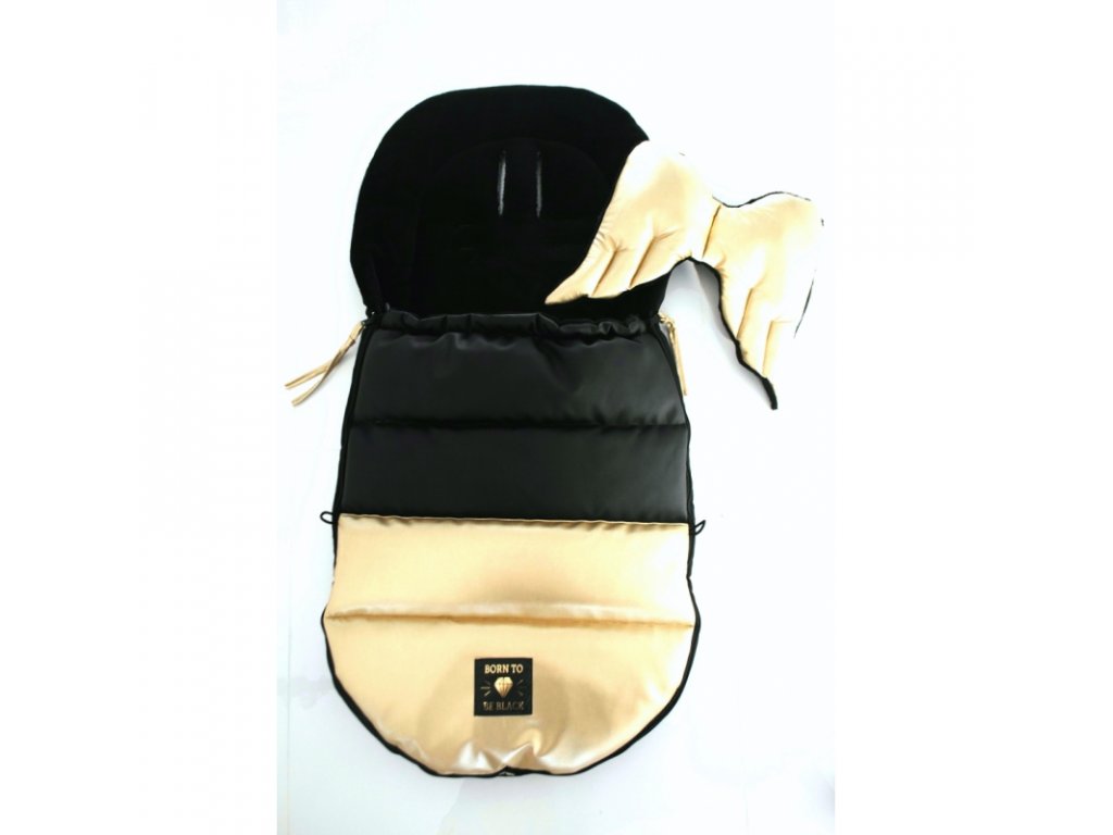 Univerzální spací pytel pro kočárky / autosedačky / sáně. Zlato-černý fusak s odnímatelnými zlatými křídly, které slouží jako polštářek pro vaše miminko.