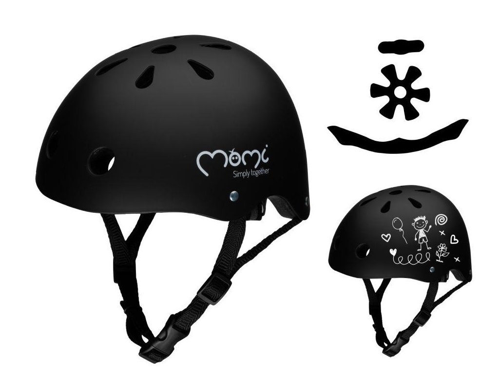 MoMi MIMI je bezpečná, pohodlná a lehká helma, ideální pro všechny malé sportovce, v elegantní a neutrální černé barvě. Má vysoce kvalitní skořepinu z ABS a EPS, která dětem poskytne naprosté bezpečí při jízdě na kole, koloběžce, odrážedle nebo kolečkových bruslích.