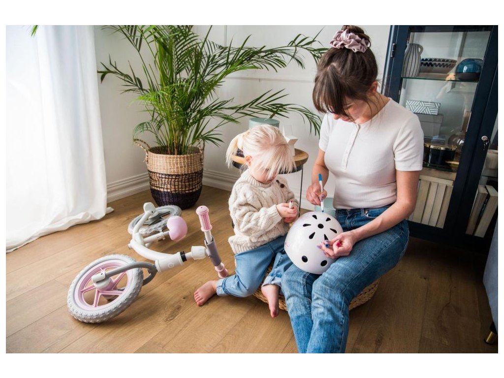 Každá helma MoMi MIMI se může stát jedinečnou, když ji děti ozdobí vlastními kresbami. Mohou na ni psát pastelkami i fixami a když je design omrzí, můžete jej snadno smýt a děti vytvoří nový.