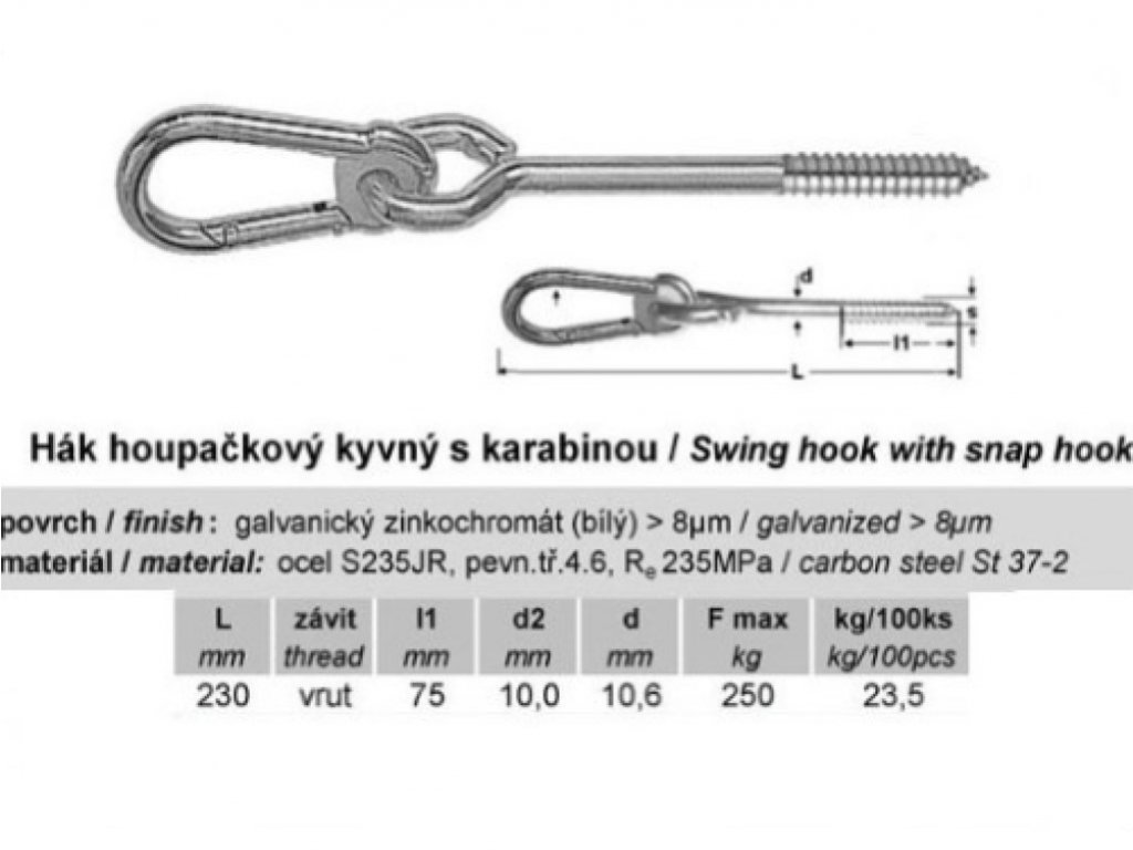 - Upozornění: Uvedená cena je za 1 ks houpačkového háku s karabinou.