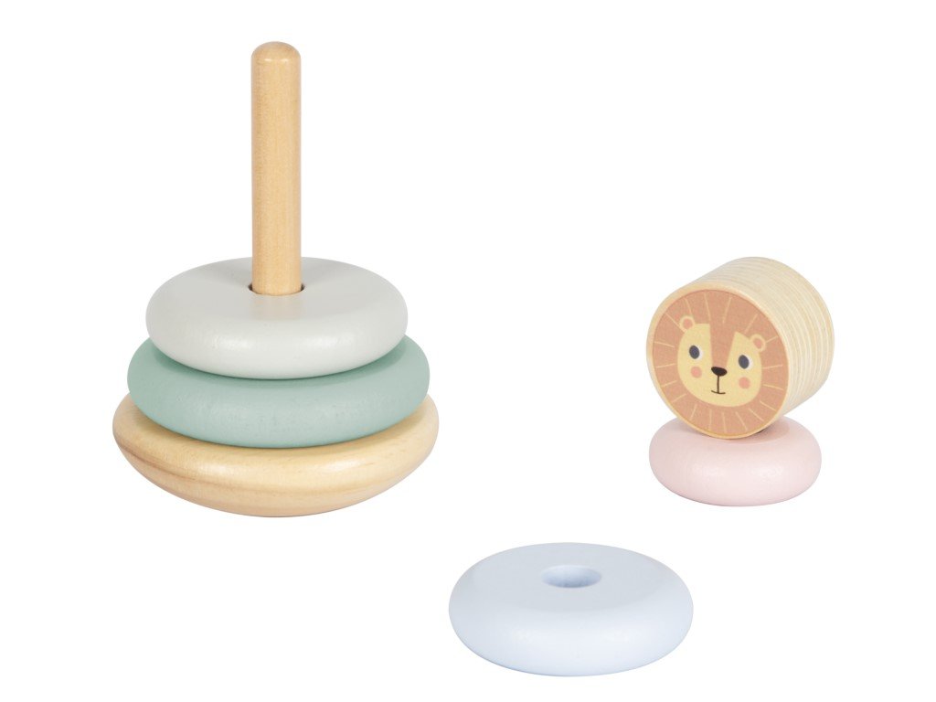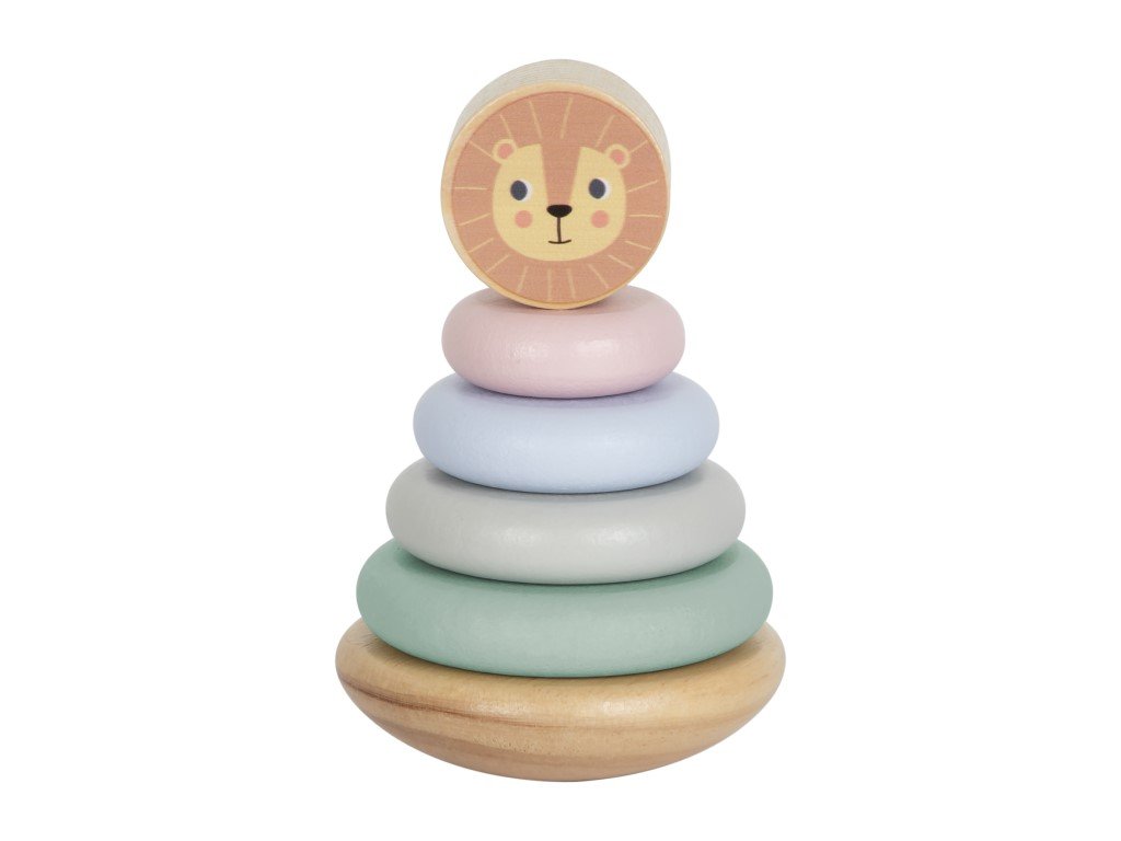 - Pyramida - dřevěná pyramida lvíček zdokonalí dětské dovednosti, naučí děti poznávat barvičky, poznávat rozdíl mezi větší a menší, skládat kroužky od největšího po nejmenší a naopak.