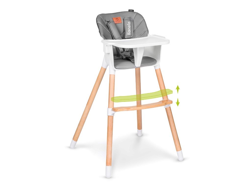 - Nastavitelná opěrka nohou - díky výškově nastavitelné opěrce nohou, se jídelní židle přizpůsobí každému dítku.