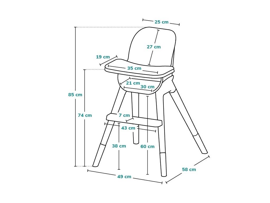 - Pohodlně tvarovaná opěrka zad - zajišťuje správné sezení při krmení i běžném sezení.