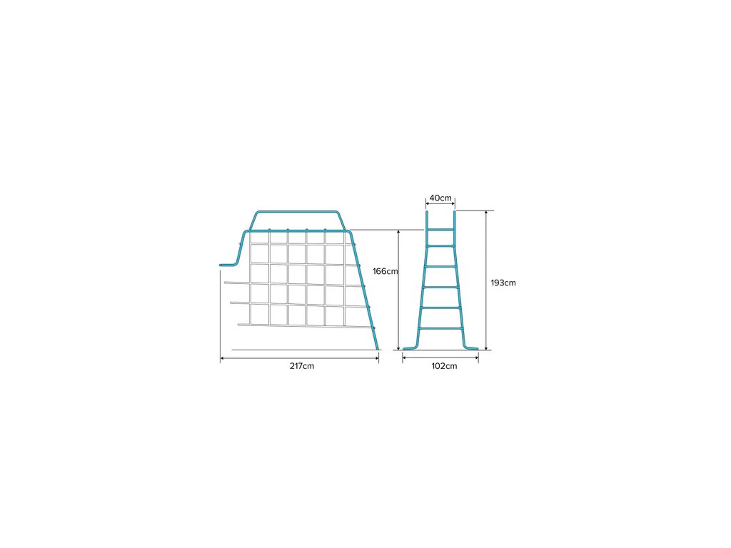 Kovová prolézačka se stanem a opičí dráhouVysoce kvalitní kovový rám se stanem v modré barvě poskytne dětem místo pro hraní i odpočinek. Do stanu mohou děti vyšplhat po kovových žebřících nebo po síti, která jim nabídne zábavné ale náročnější lezení. Kovová opičí dráha se sítí na lezení poskytne dětem prostor pro mnoho různých her.