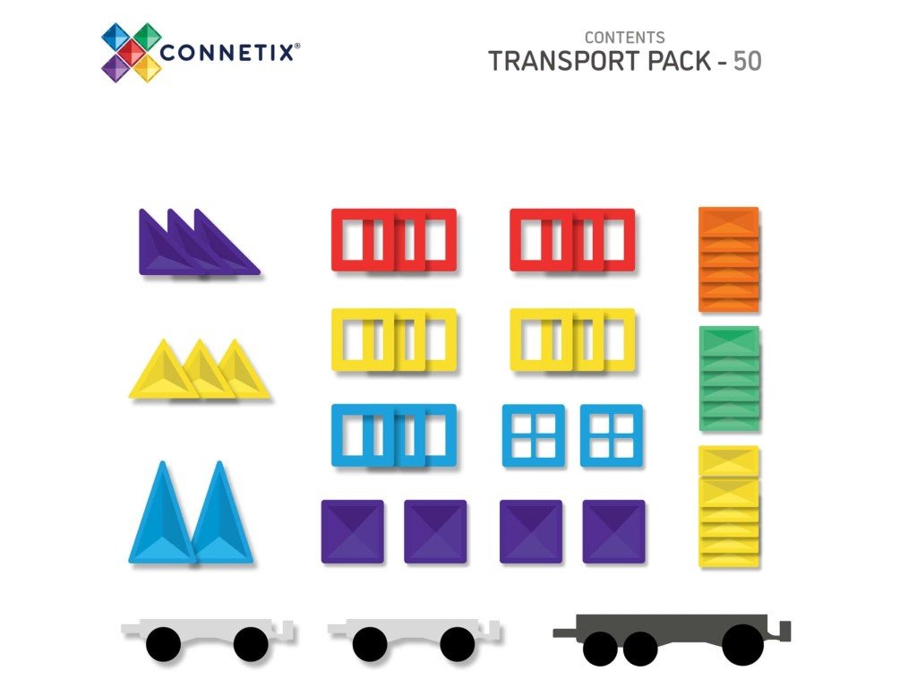 Tato sada obsahuje mnoho dílů pro stavbu automobilů a přívěsů. Najdete v ní například jednu oboustrannou šedou přepravní základnu, dvě průhledné pohyblivé základny se skutečnými gumovými koly a navíc řadu tvarů magnetických dílků, které vám pomohou stavět a vytvářet nekonečné návrhy vozidel. Vytvářejte si vlastní nákladní automobily a vlaky, letadla, sanitky, hasičské vozy a vysokozdvižné vozíky.