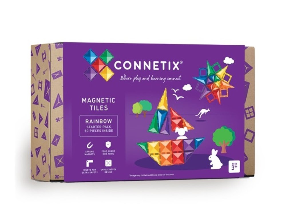 Tento balíček, který obsahuje velké a malé čtverce a tři typy trojúhelníků v šesti zářivých duhových barvách, je skvělým základním setem. Pro větší a propracovanější výrobky můžete základní sadu rozšířit o další stavebnice Connetix - např. Magnetickou stavebnici - duhovou kuličkovou dráhu 92 ks.