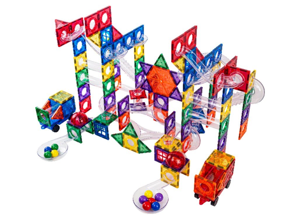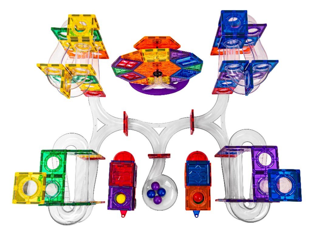 Velká sada magnetických dílů pro stavbu kuličkové dráhy