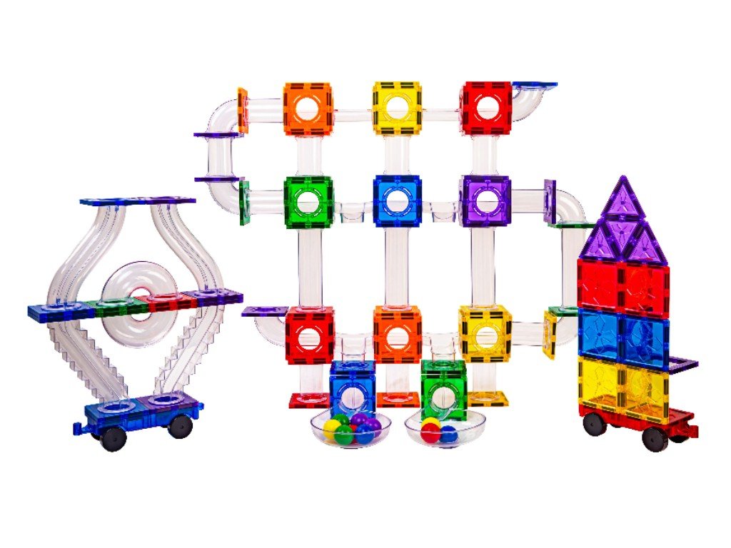 Velká sada magnetických dílů pro stavbu kuličkové dráhy