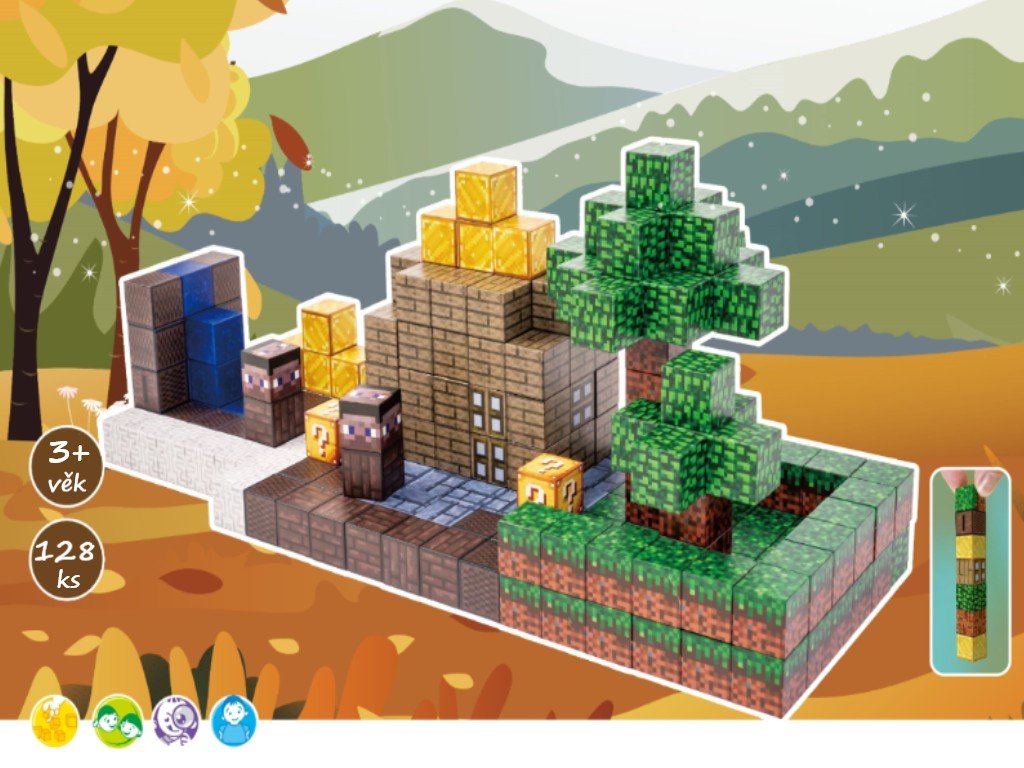 Rozšiřte svět fantazie a tvoření se sadou magnetických kostek v designu oblíbené virtuální hry, která přináší mnoho možností, nápadů a zábavy. Díky pevným magnetům a promyšlené konstrukci mohou děti stavět nejen jednoduché tvary, ale i složité budovy, vesničky či originální stavby podle vlastní fantazie.